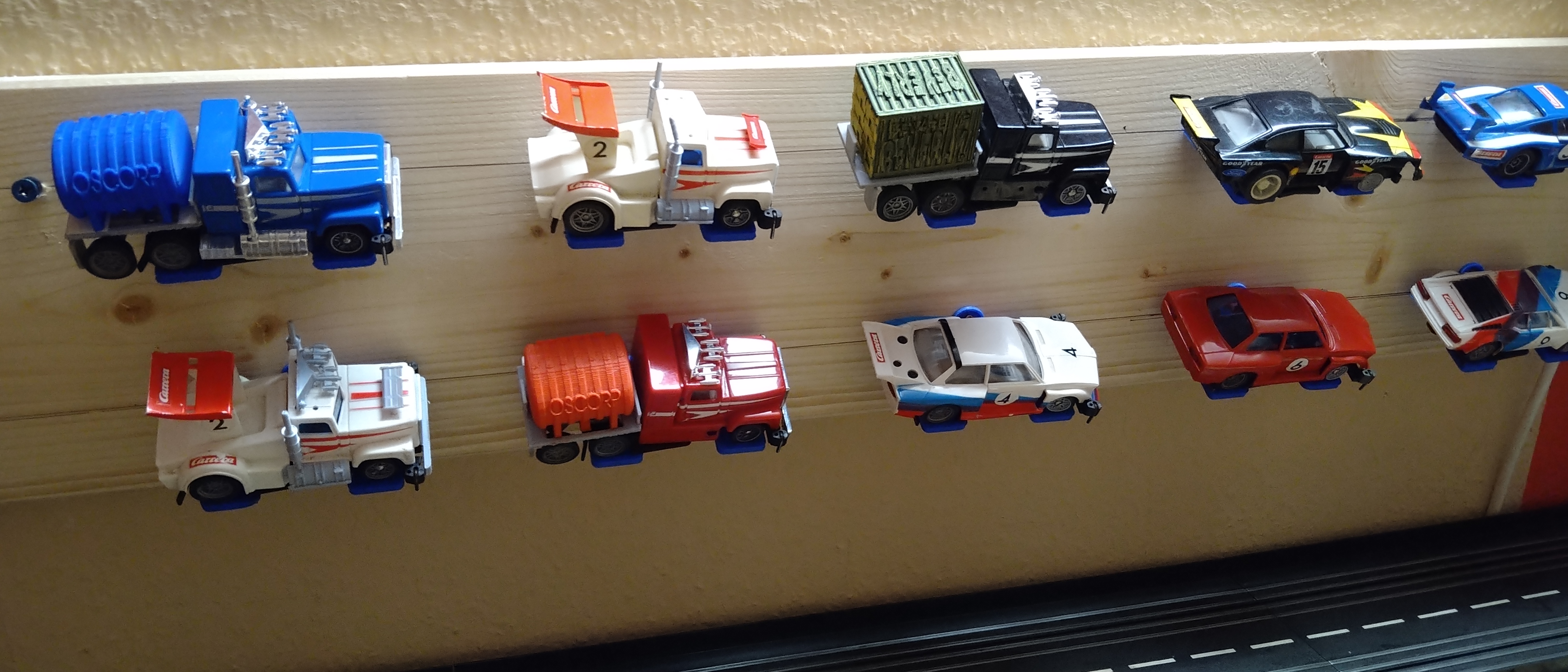 Häng die Auto an die Wand.