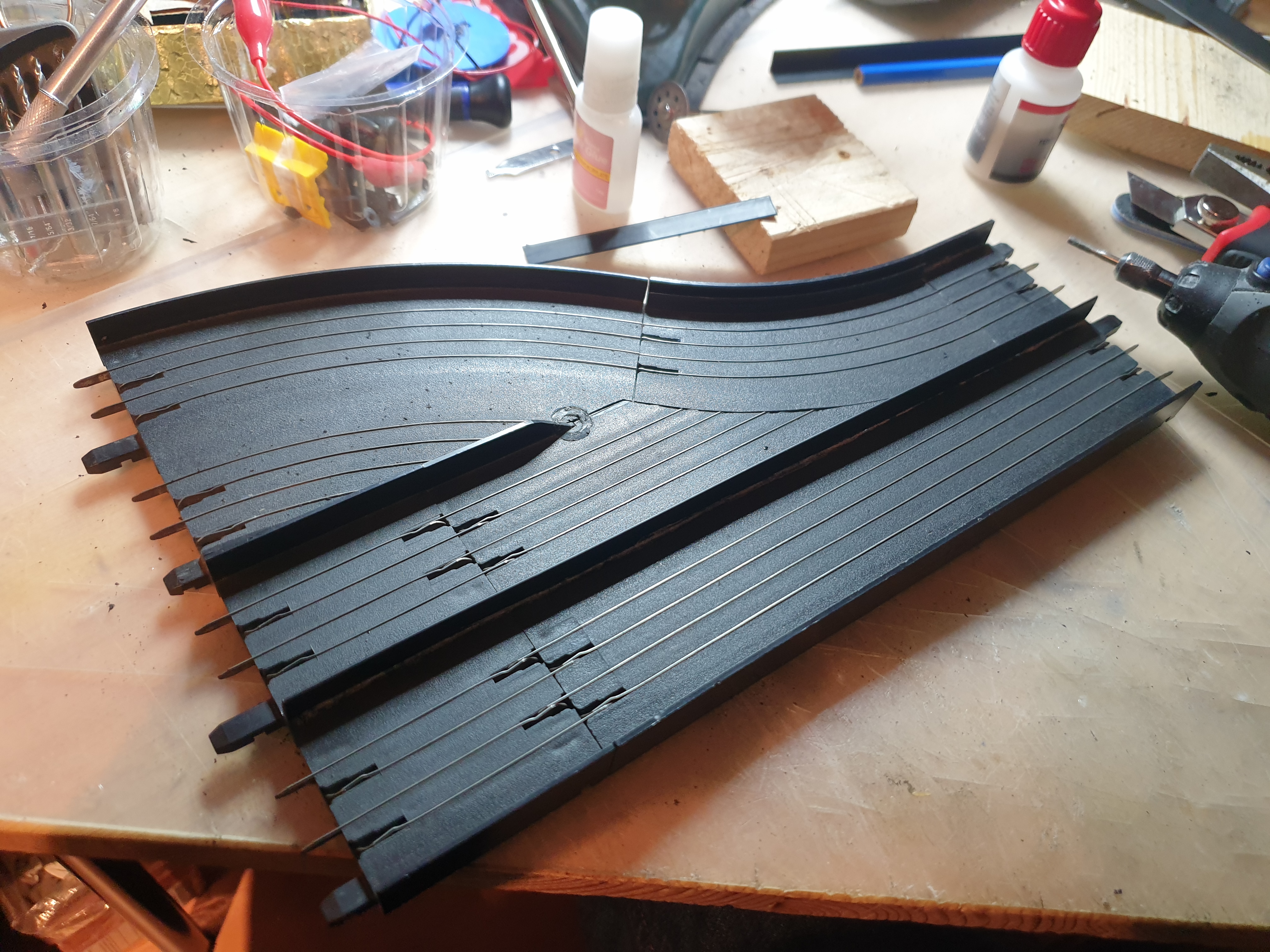 ...also die Gerade Strecke von den abgesägten Leiterbahnen an; etwa eine gute Doppelgerade lang