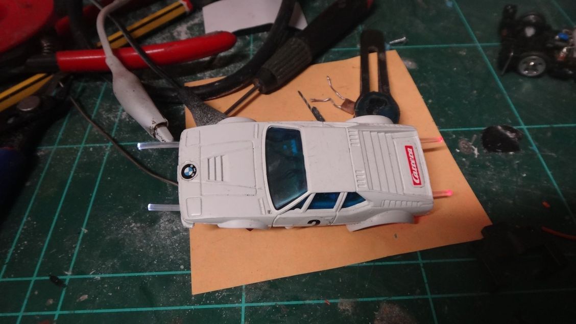 Versuch noch alles mit 4 Leds...in Reihe (weißer Kabelanschluß)....das wird extrem hell...wahrscheinlich nur mit schwarzer Karosse sinnvoll...abwarten :P