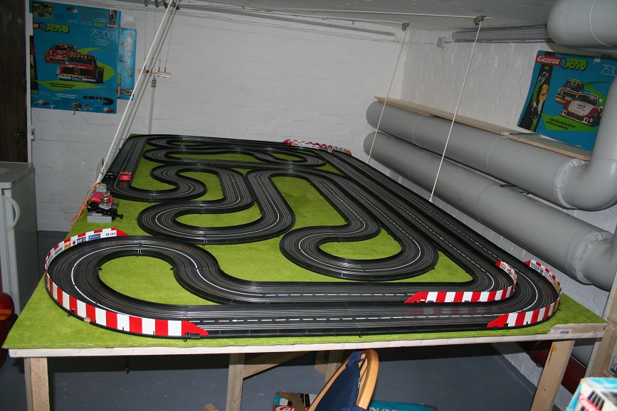 Der zweite Nachteil ist das 0,8mm Material selber, es bremst, da es nach einer Weile rau wird, in Kombination mit der glatten Fahrbahn fahren die Autos teilweise mit durchdrehenden Reifen die Kurvenrampen hoch.