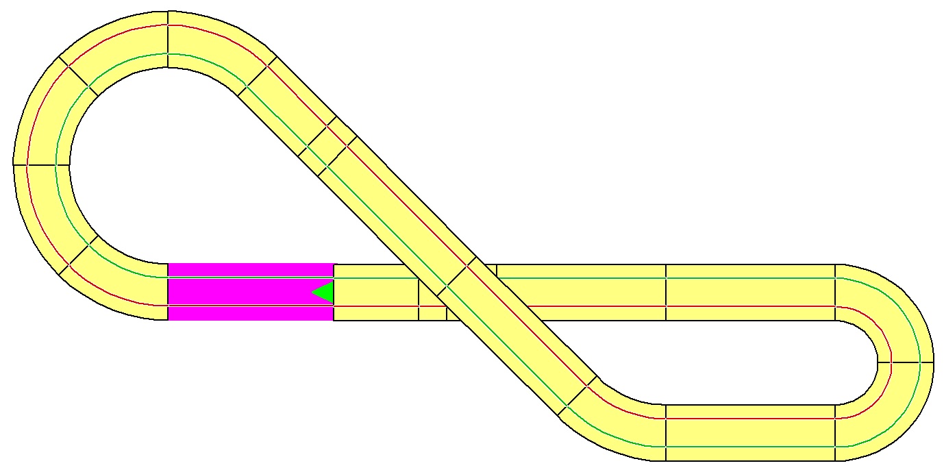 Ansonsten funktioniert das ganze gut, das einfädeln in die Kurven klappt durch die Überlappung der Innenrandführung in den geraden Bereich besser als auf dem Original.