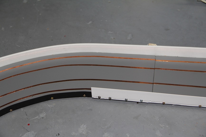 Das dünnere Material lässt sich besser in die Kurven schmiegen, allerding, da es von der Rolle kommt, hat es immer noch die Rollenbiegung, deswegen muss man es an den Verbindungsstellen immer direkt am Stoß verschrauben, bei den Kurvenübergängen geht das aber auf Grund der Banden/Randführungsüberlappung nicht was zu Verzug führen kann.