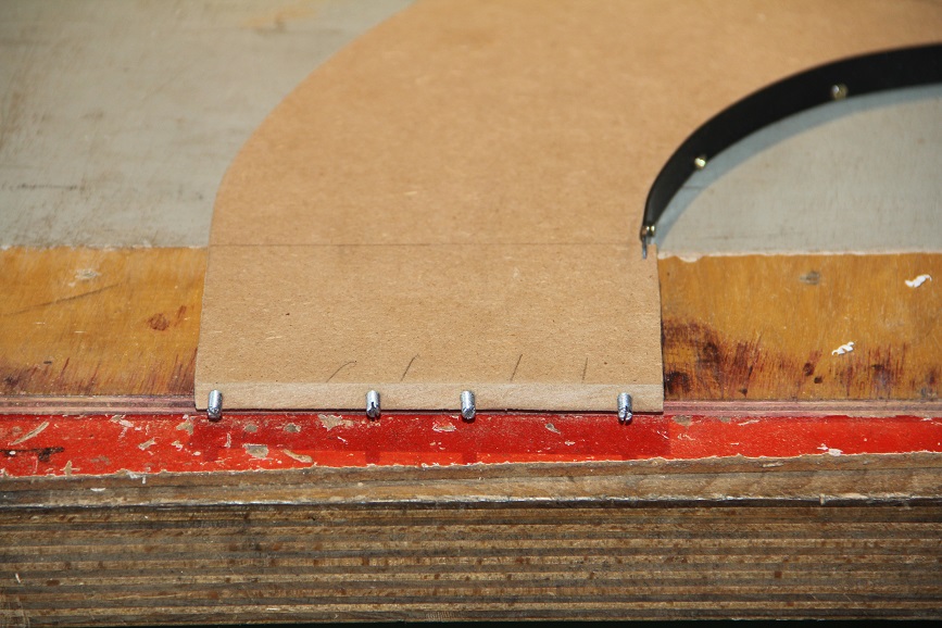 Zur Befestigung hab ich ca. alle 8cm, am Anfang enger, eine 2,5 mm Holzschraube rein gejagt. Die Planken waren mit 2,5 mm Vorgebort, ebenso das MDF mit 1.8 mm.