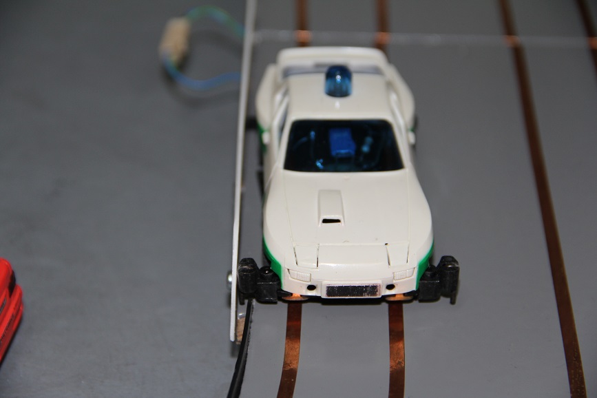 Der zweite Nachteil ist das 0,8mm Material selber, es bremst, da es nach einer Weile rau wird, in Kombination mit der glatten Fahrbahn fahren die Autos teilweise mit durchdrehenden Reifen die Kurvenrampen hoch.