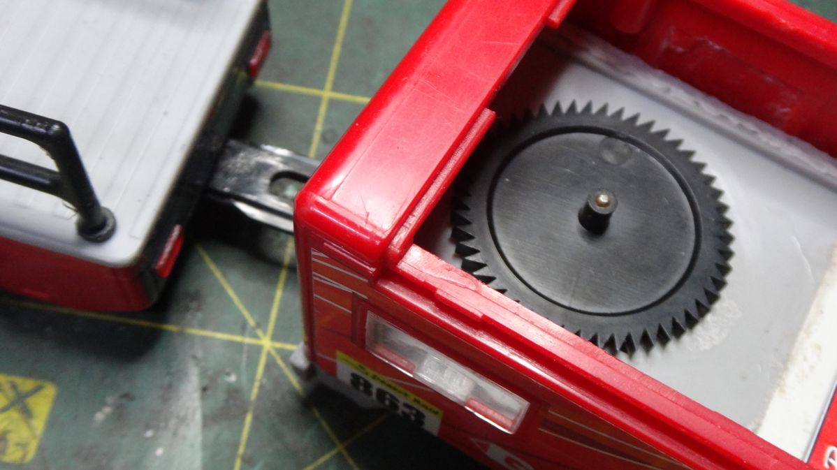 ..durch das runde Magnet an der Zugmaschine und dem Gelenk...funzt auch die Steilkurve innen