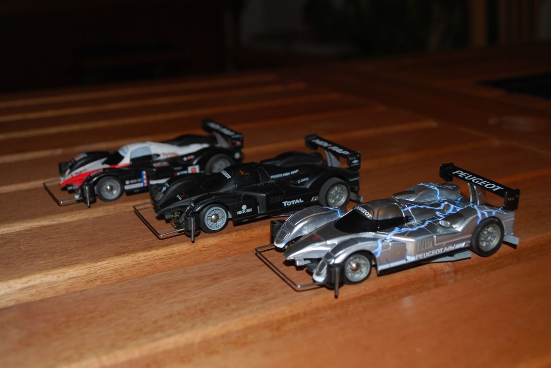 Nach dem Motto "Aller guten Dinge sind drei" hab ich meinen dritten Carrera Pull Speed Peugeot 908, den silbernen, auf ein Servo-Chassis gesetzt. Hat im Gegensatz zu den anderen beiden erstmal einen Original-Motor bekommen.