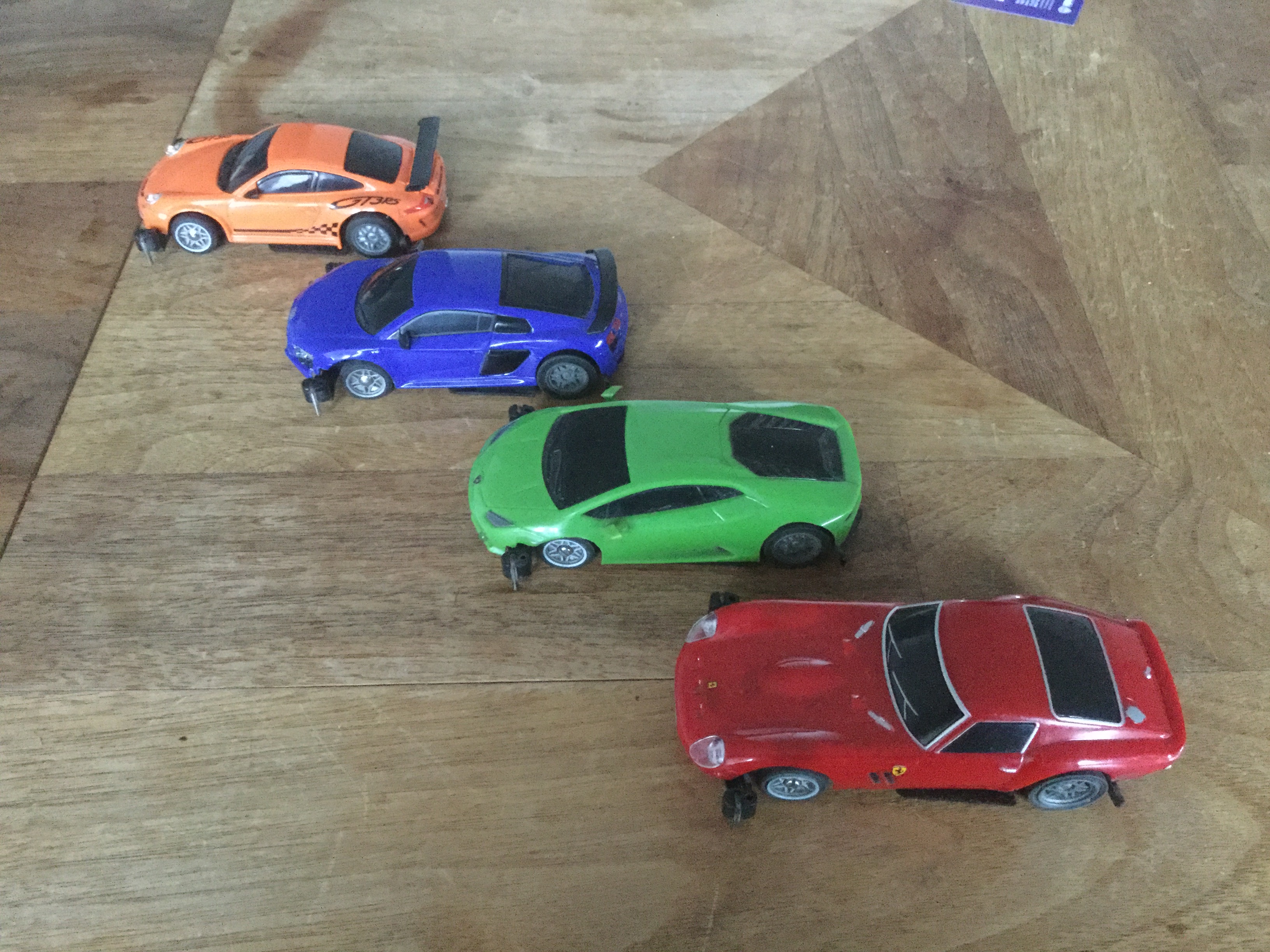 Von Wiking die Karman Ghia , oder die Variant passen hervorragend. Von Pull&Speed der Lamborghini Hurracan in grün oder als hellblaues Polizia Modell. Der rote, verchromte, Safetycar und Polizei- Mercedes von Pull & Speed passen auch tadellos.