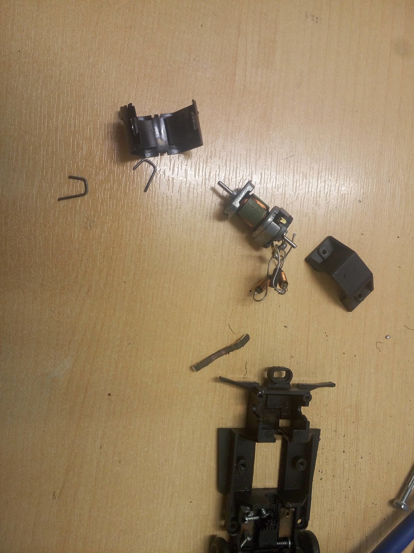 brauchst für' zerlegen das Gehäüse net verbiegen...hast du Kohlen und Halter entfernt...kannst du beide Lagerdeckel durch aufbiegen der kleinen Zungen...leicht über die Welle abziehen. ..so dat Teil nochmal zurechtbiegen is aufwendiger.