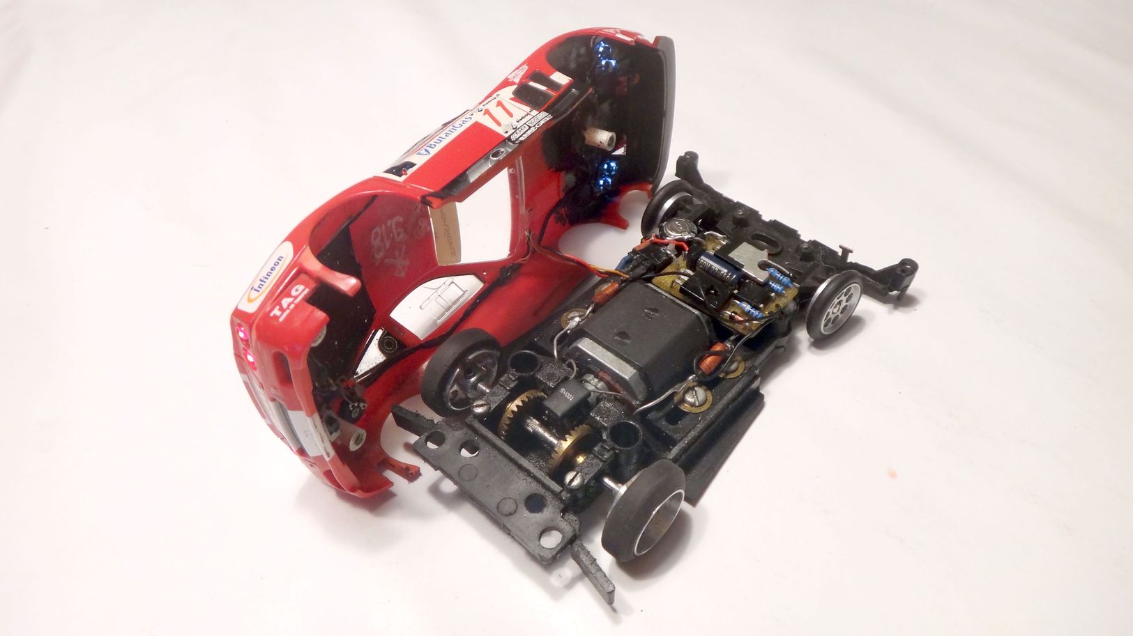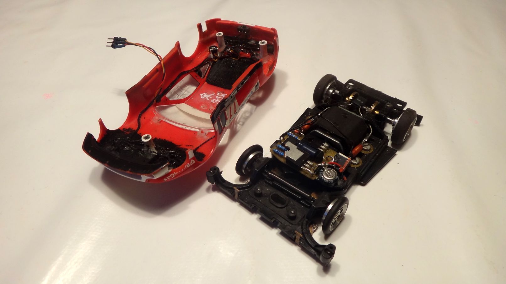 Bei dem 917 musste ich aber die hinteren Abstandshalter entfernen, weil die Karosse sehr kurz ist. Fährt entsprechend :poo: (relativ).