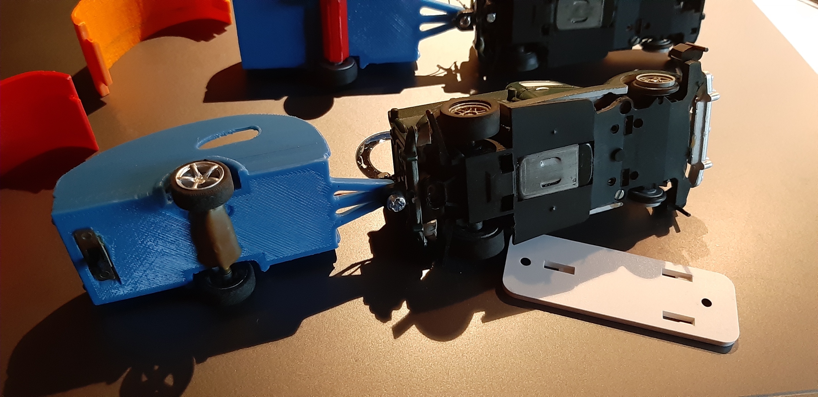 Somit kann man die Fahrzeuge beliebig ans Auto hängen, wenn man z.B. nur den Motor antreiben möchte. Dann reichen auch 2 Drähte.