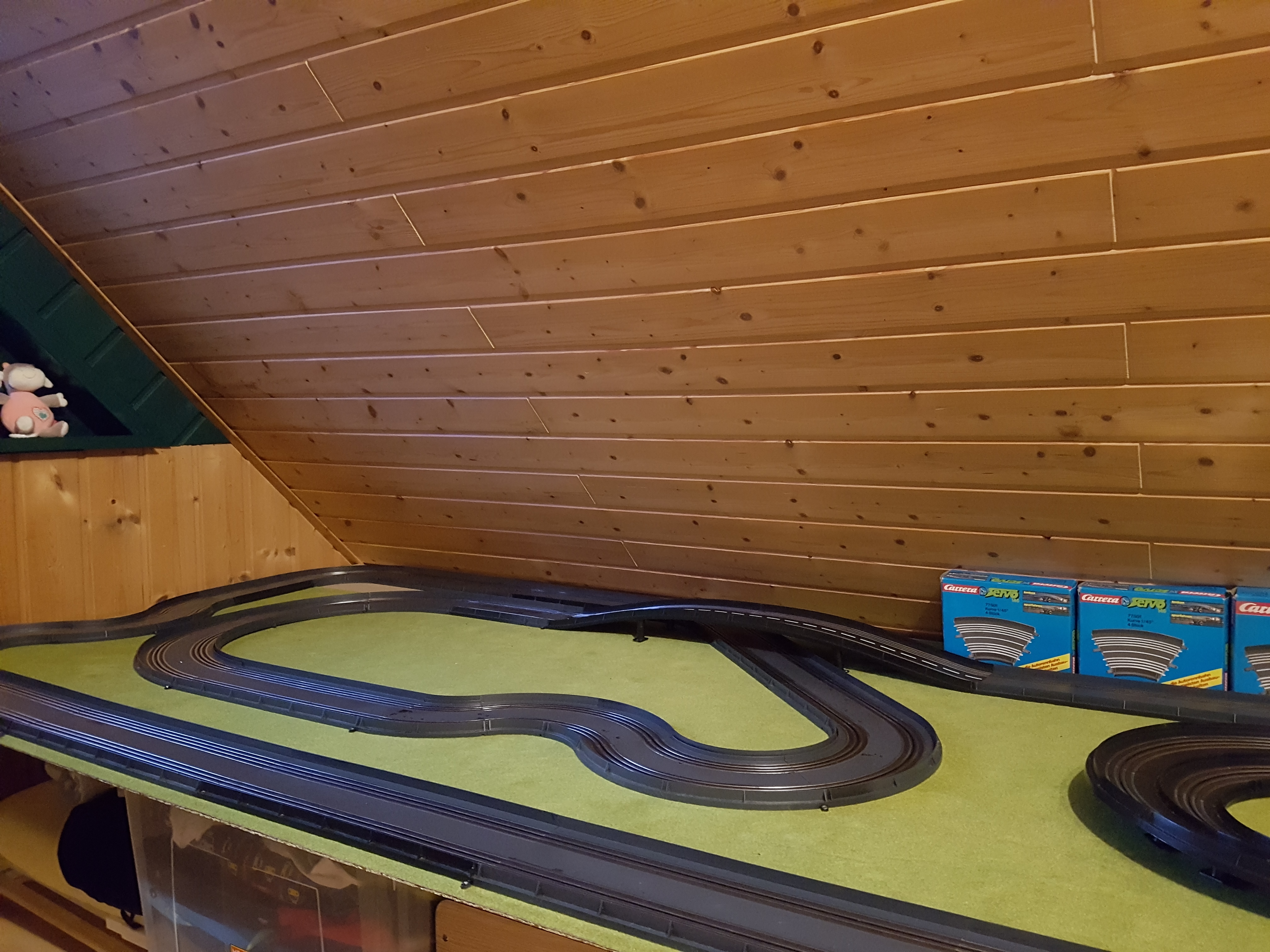 Wenn du keinen Festaufbau hast dann kannst du viel experimentieren. Ich habe meinen Kurs jetzt fest installiert wie man oben sieht. So bleibt die jetzt auch. Ich kann dir das Slotman Exe Tool empfehlen. Hab die von Helmut. Damit habe ich auch meine Bahn geplant. Ich glaube aber Helmut muss das für dich freigeben.
