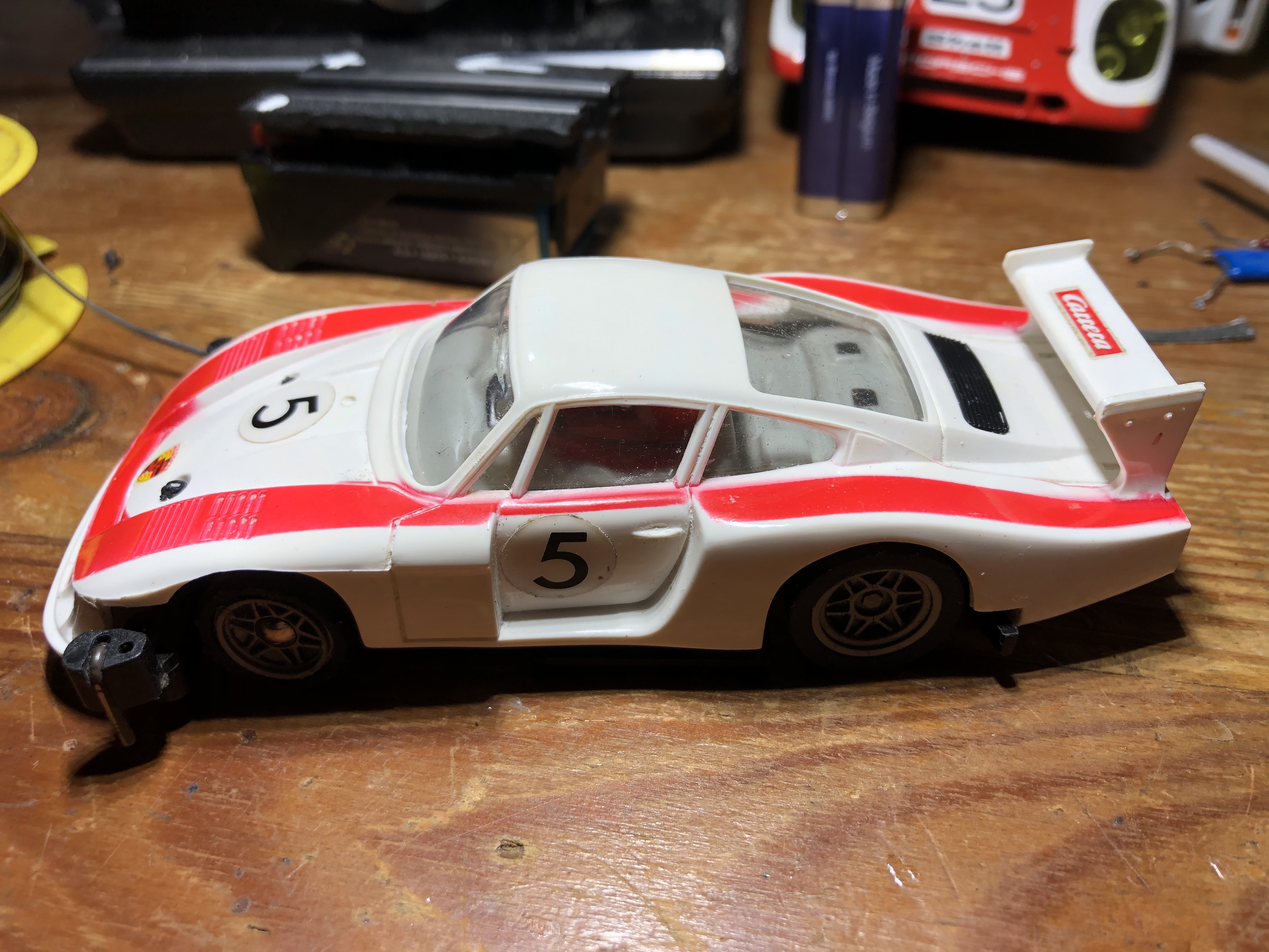 So Heute habe ich es mal geschafft mich endlich mal neben BRM Carrera 124 und NSR mit meinen Retro Rennern zu beschäftigen,viel brauch ich euch da ja nicht zu sagen das wist ihr eh besser wie ich.Erst mal zerlegen reinigen usw .Gut das ich durch die 124 er mit Ersatzteilen versorgt bin den ersten Schreck hatte ich als ich feststellen musste das das Lenkritzel gebrochen ist,also aus dem Portfolio ein Achter Sigma genommen und angepasst läuft :driver: Ergebnis siehe Bilder.