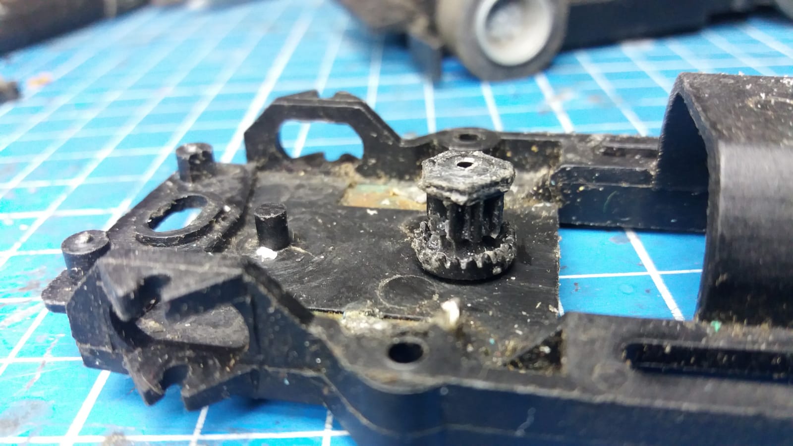 Man könnte das ins 132er Chassis passende 140er Kronenrad auch intakt lassen...und nur Teile des 140er Lenksegments, die Zahradstange, 2x nebeneinader (weil kurz) auf's gekürzte (Karies imitieren, Zähne ab) 132er Lenksegment kleben...was stabiler wäre...vielleicht