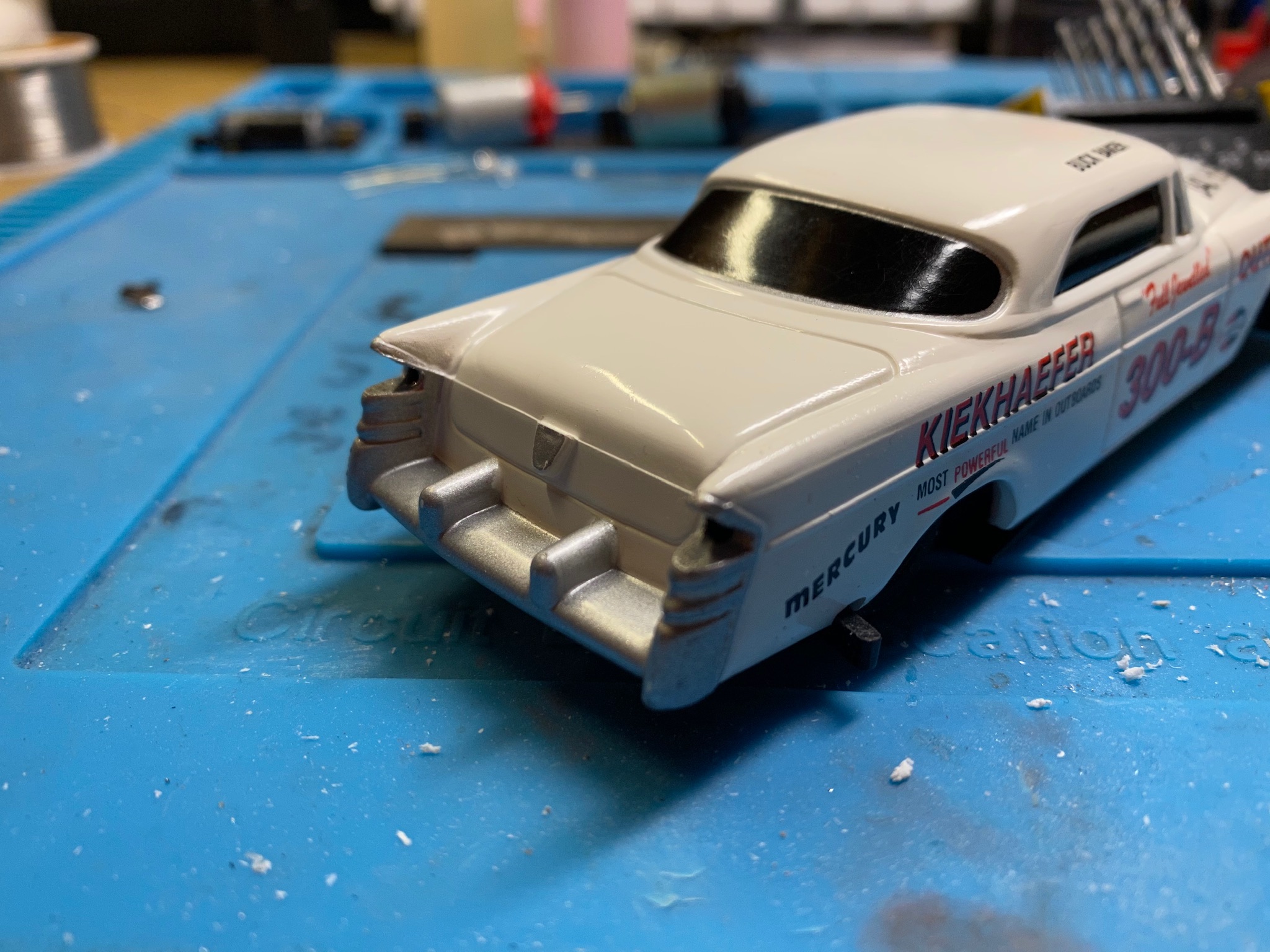 Manchmal reichts, die Karosse an allen möglichen Stellen auszudremeln und auszufeilen, insbesondere die Radkästen, manchmal muss man die Karosse schmälern oder weiten, manchmal muss man auch am Chassis alles mögliche ändern.