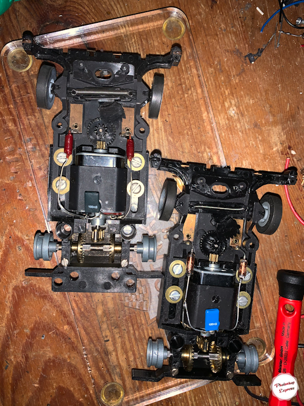 Habe dann mal die beiden Autos aus der Grupa die mir gestern zugeflogen ist aufgeschraubt,sieht so aus als hätte ich mehr Glück bei den Chassis gehabt.