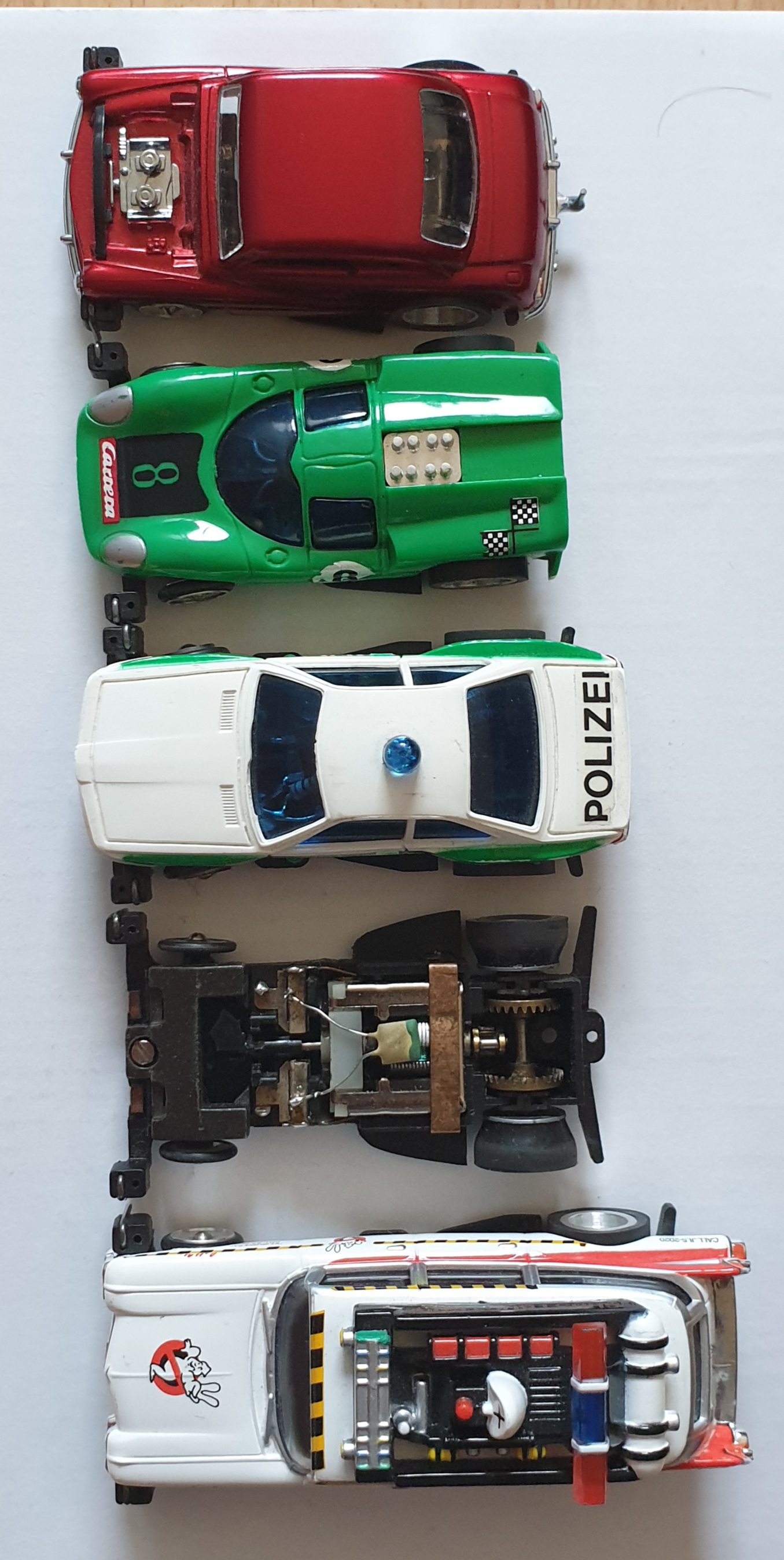 Ganz oben Ultrakurz-Chassis - 3.8cm<br />Ganz unten Ultralang-Chassis - 5.6cm