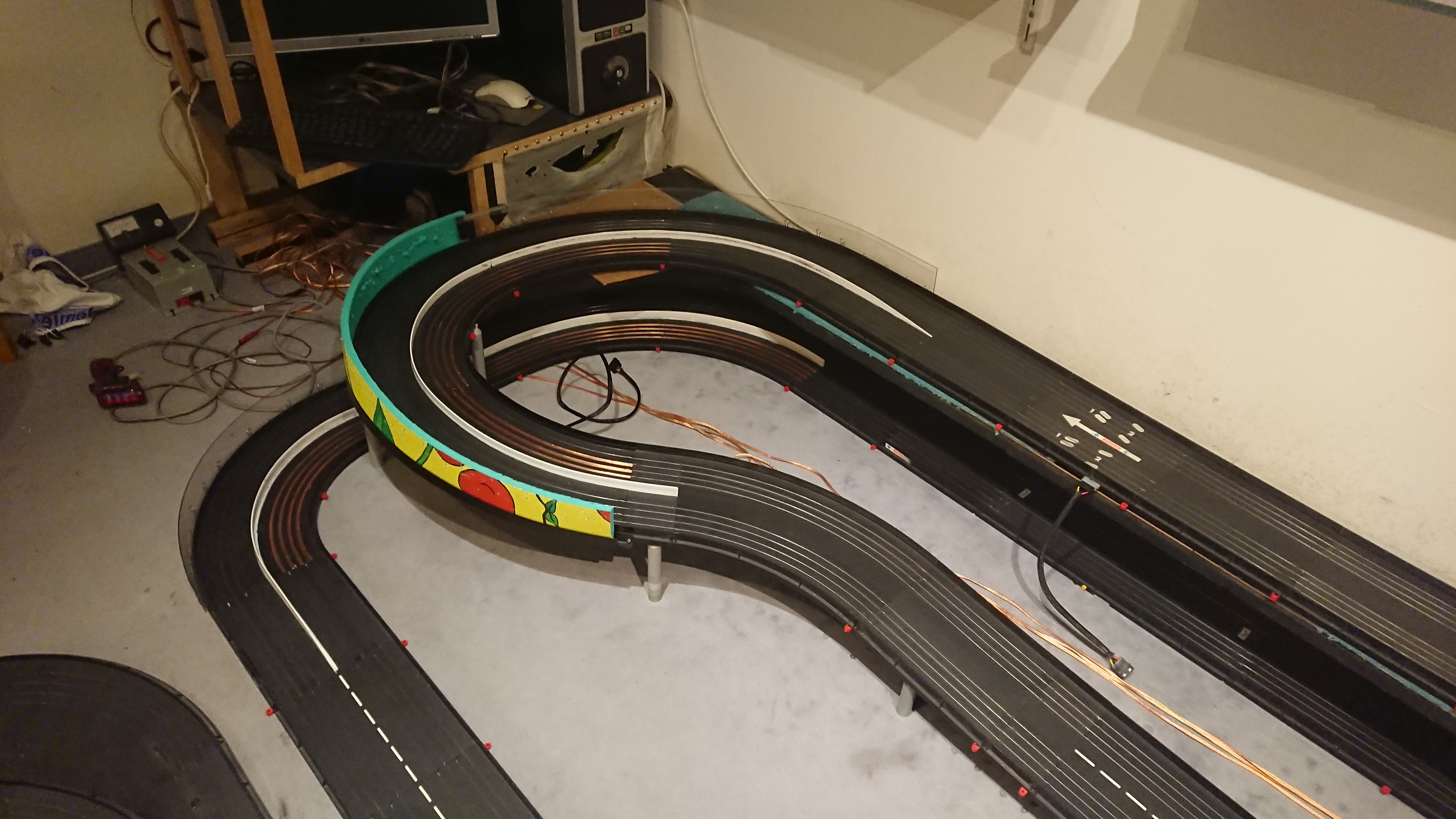 Erst waren noch ein paar Kurzschlüsse auf der Bahn. Hab in der Woche davor mit drei Bier im Schädel Stromeinspeisungen gelötet. Sollte man nicht machen, das ist ohne schon kompliziert genug...