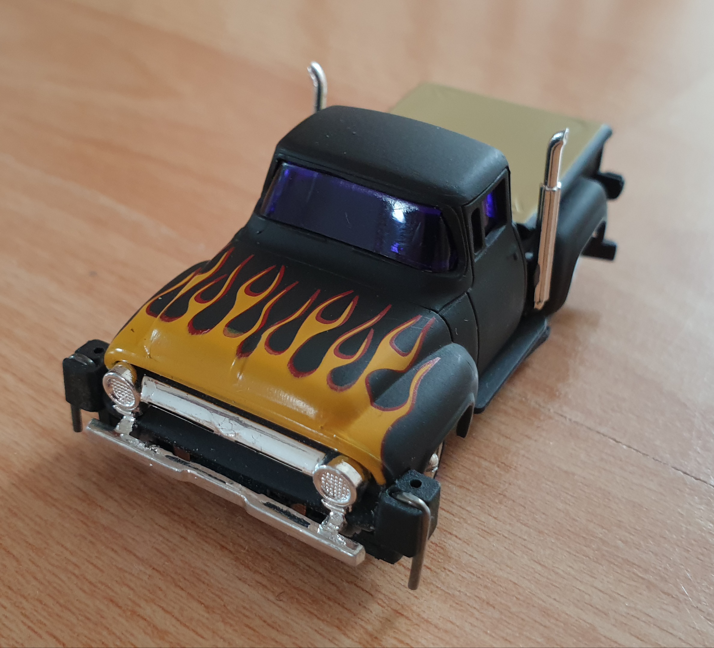 Hab gebastelt. Musste für hinten ganz schmale Felgen herstellen. Sonst hätte das nicht unter die Karosse gepasst. Alu-Felgen wären natürlich schöner, aber da müsste jemand ne Sonderanfertigung drehen.....
