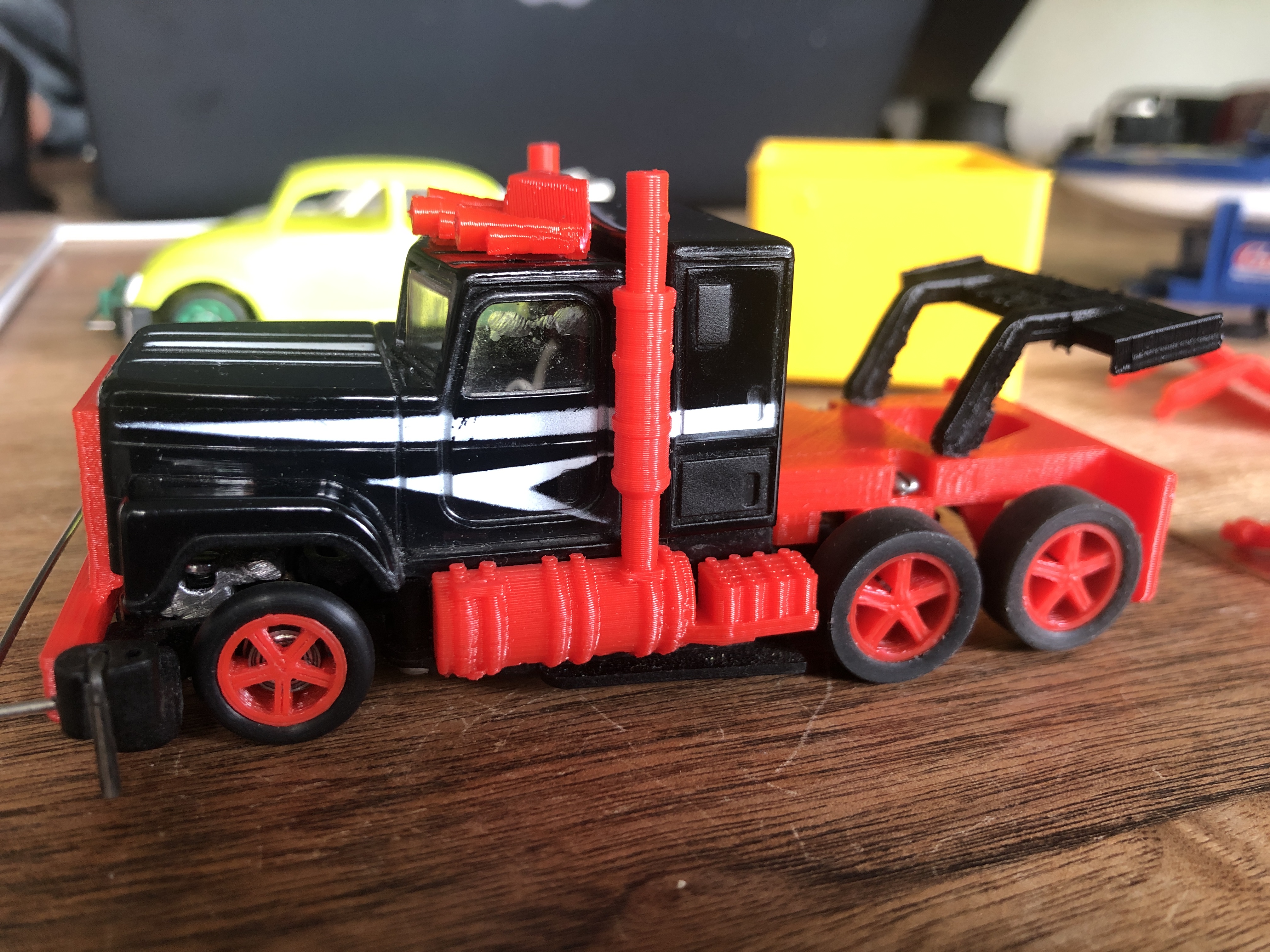 dann wurschtel ich hier auch mal mit - mein erster Umbau - ganz simpel - ohne Chassis anpassen - nur die Karo eines Go Autos angepasst: