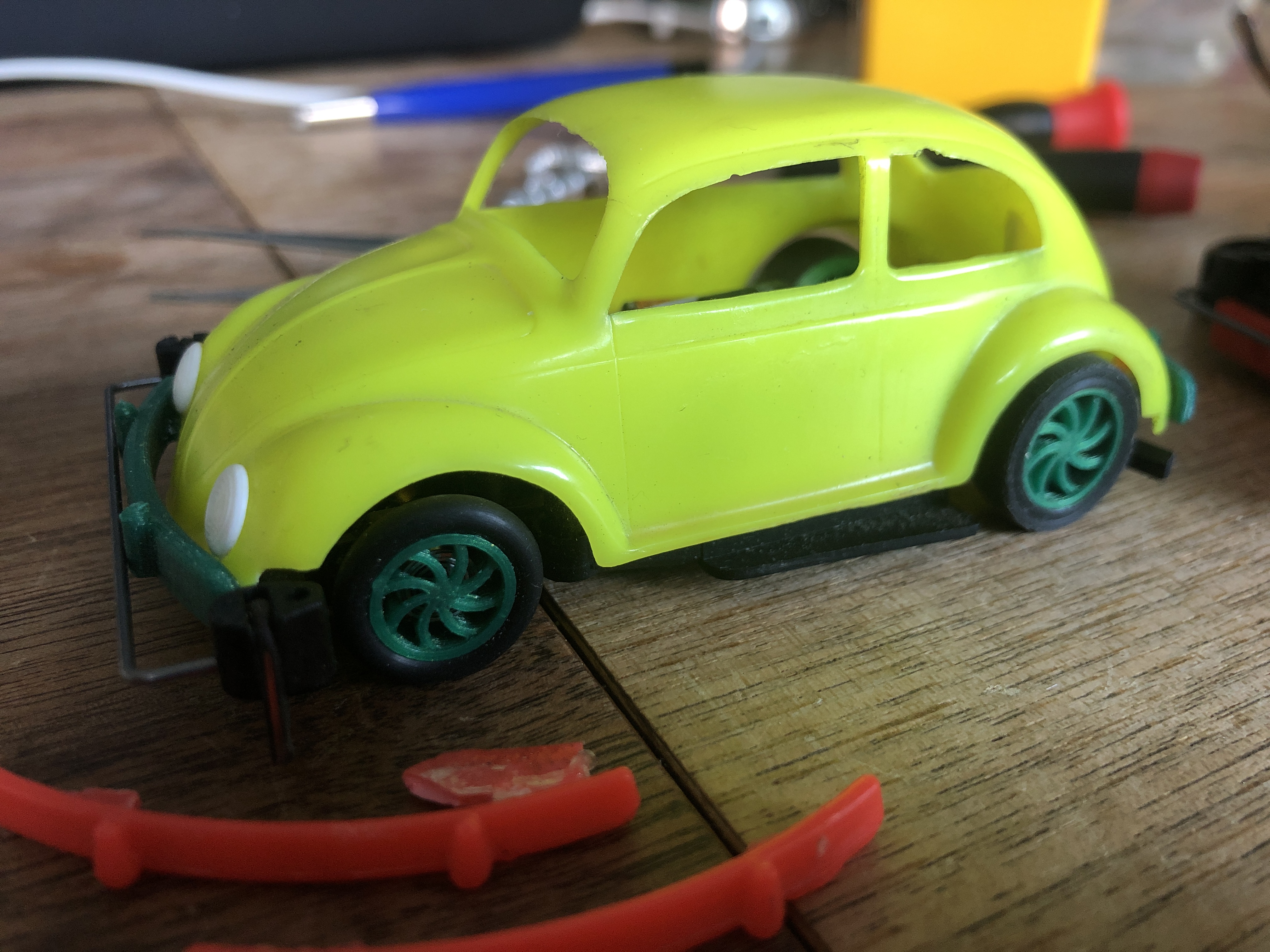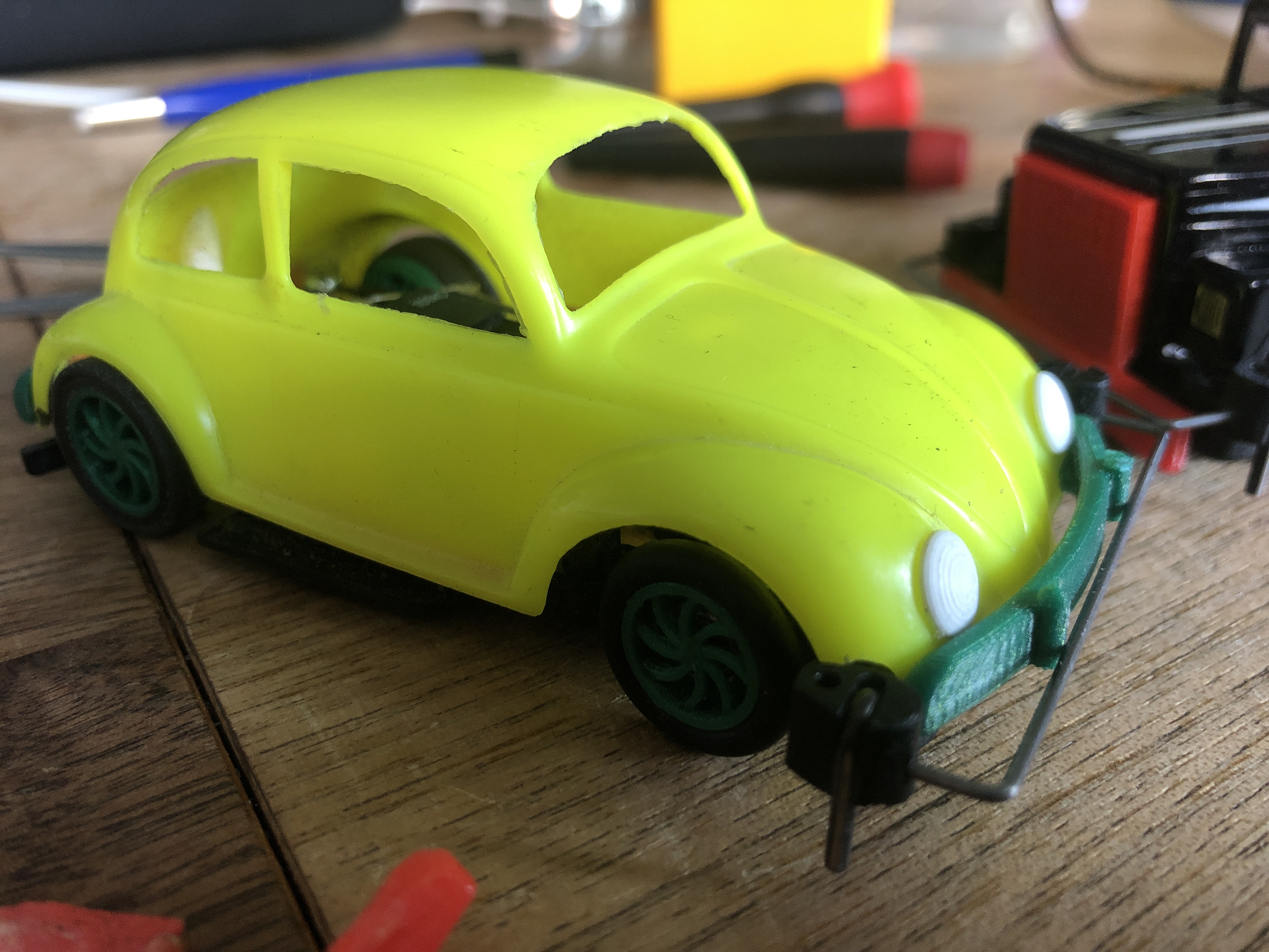 Der Käfer hat dank Werner vorne Kugellager mit passenden gedruckten Felgen sprich mit den Aussparungen für die Kugellager! Er Löuft viel sauberer beim lenken .. außerdem kann man mit Kugellager auch sonst nicht mehr funktionsfähige Achsschenkel verwenden!