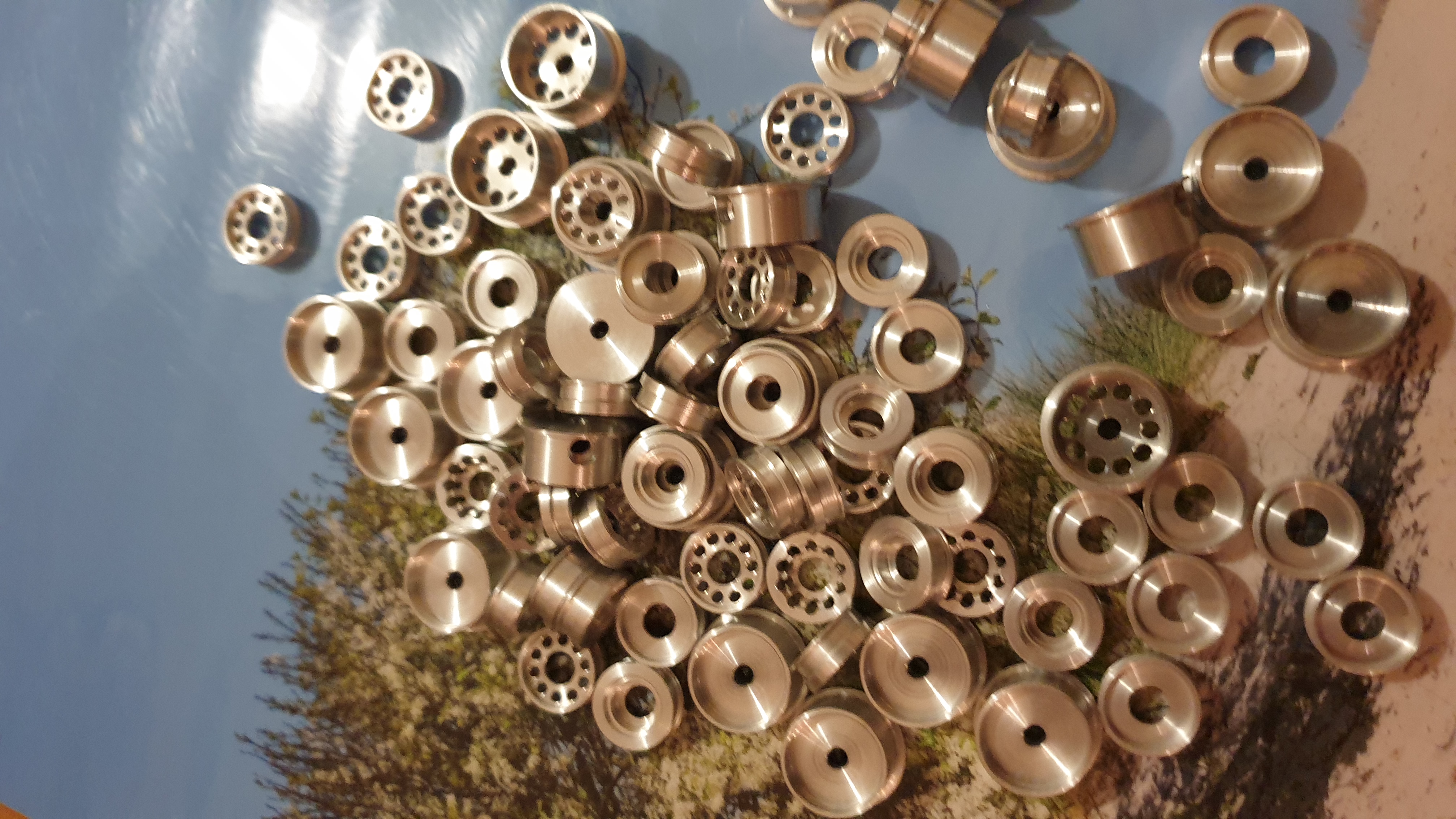 Richtig, gut erkannt. Genau die Anregung hatte ich auch an Jörg geschickt. Zumindest bei den Felgen mit Lochdesign geht das aber laut Jörg nicht, da er da die Felge durch die Achsbohrung festmacht, um das Design zu fertigen.