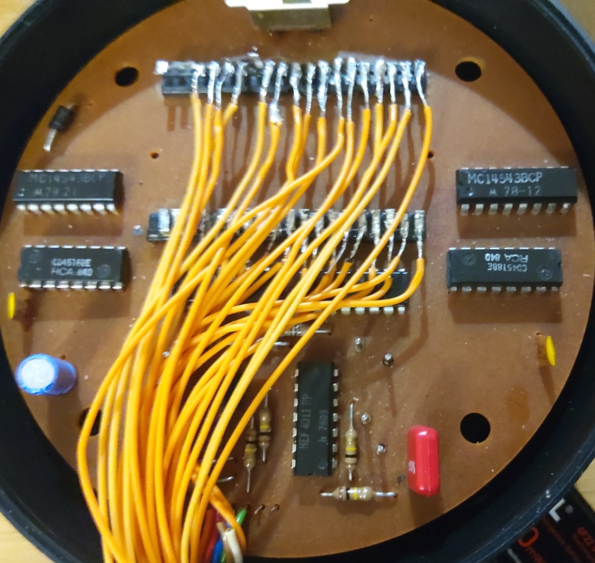 An den Kontaktleisten der Diplayhalterung auf der Platine des Rundenzählers habe ich Litzenkabel aufgelötet. (siehe Bild 4).