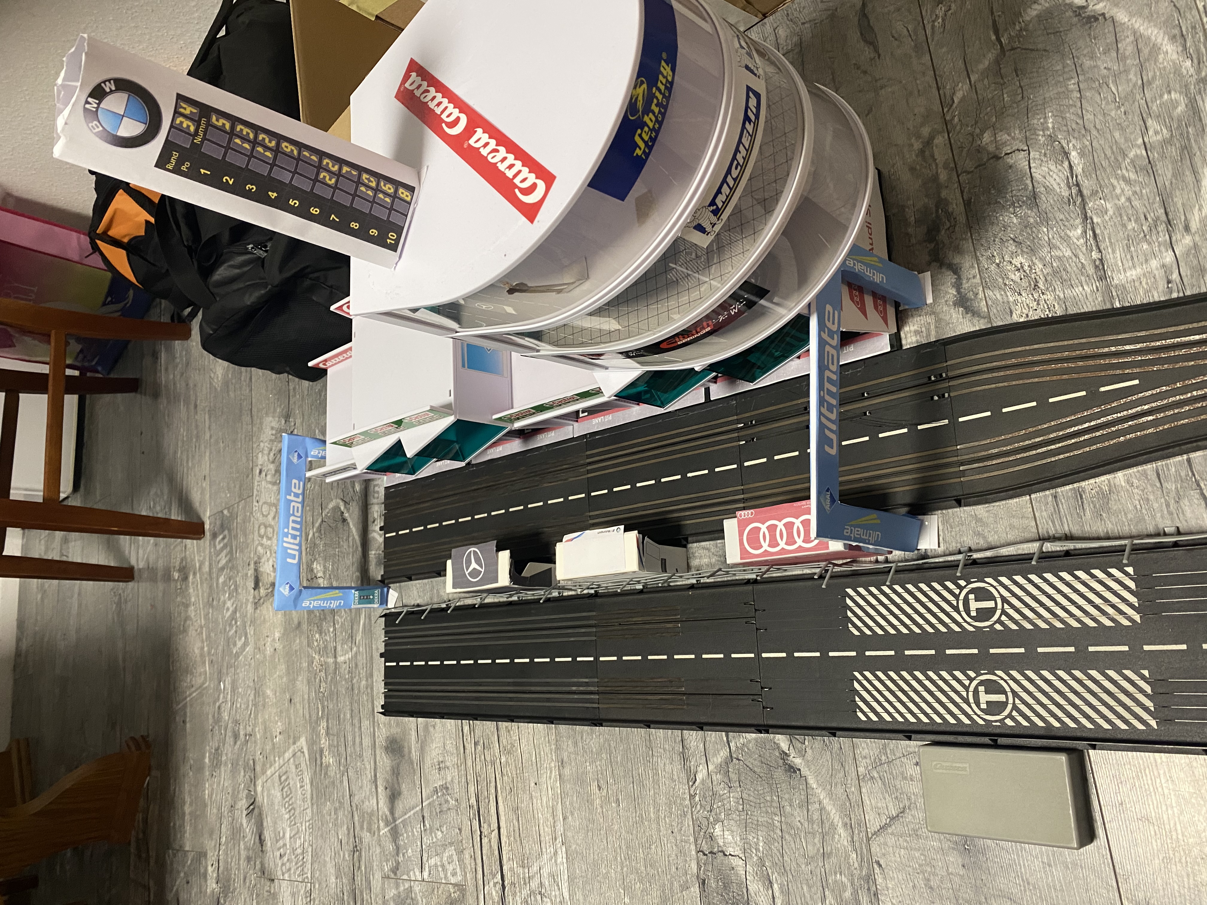 Moin gemeinde. Neue Sachen sind eingetroffen , meine Boxengasse wäre dann schon mal Ready, Turm wird aber noch ausgeschmückt innerlich und bastel noch an Antennen für die TV Anstalten , ebenfalls neu dazu gesellt sich nun Hans Werner Aufrecht (R.I.P.) mit dem HWA Mercedes und dem AMG Mercedes Team von Norbert Haug