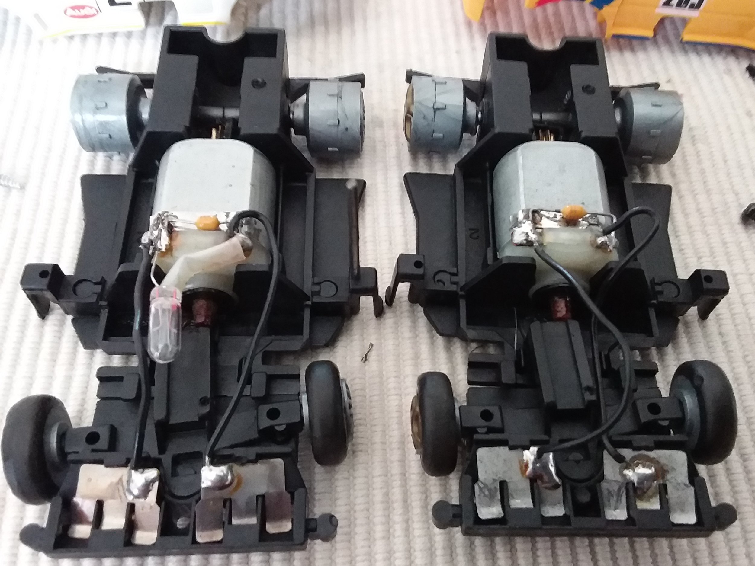 Kürzlich habe ich eine alte Carrera Servo 140 Rennbahn mit 4 Autos gekauft. Ich habe alles zerlegt, gereinigt, manchmal repariert und gefettet, was nötig war, die Autos funktionieren alle und die Motoren machen einen schönen Lärm.