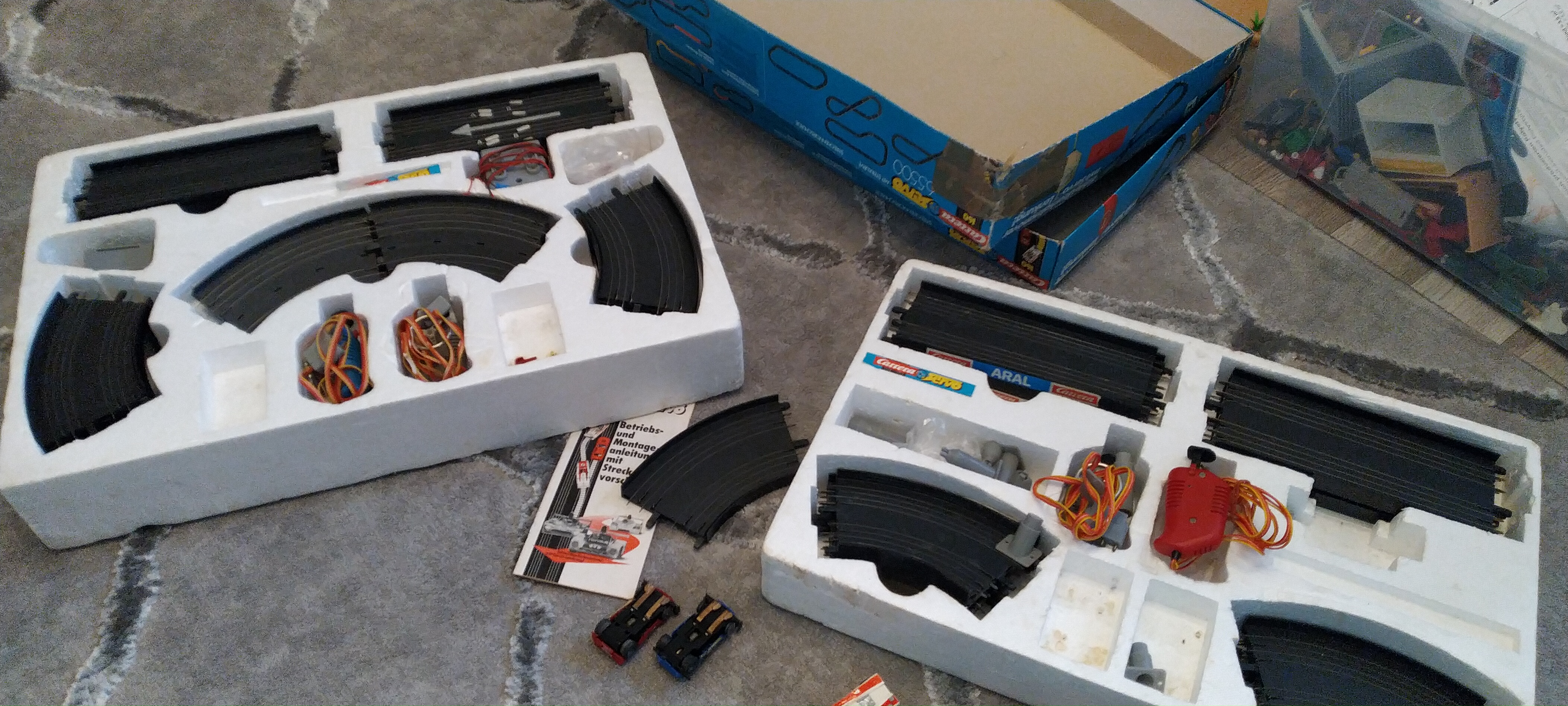 Das sind die zwei Startpackungen mit denen ich begonnen habe Hier die inkludierten Autos Die mache ich gerade wieder fit Und die kam gestern