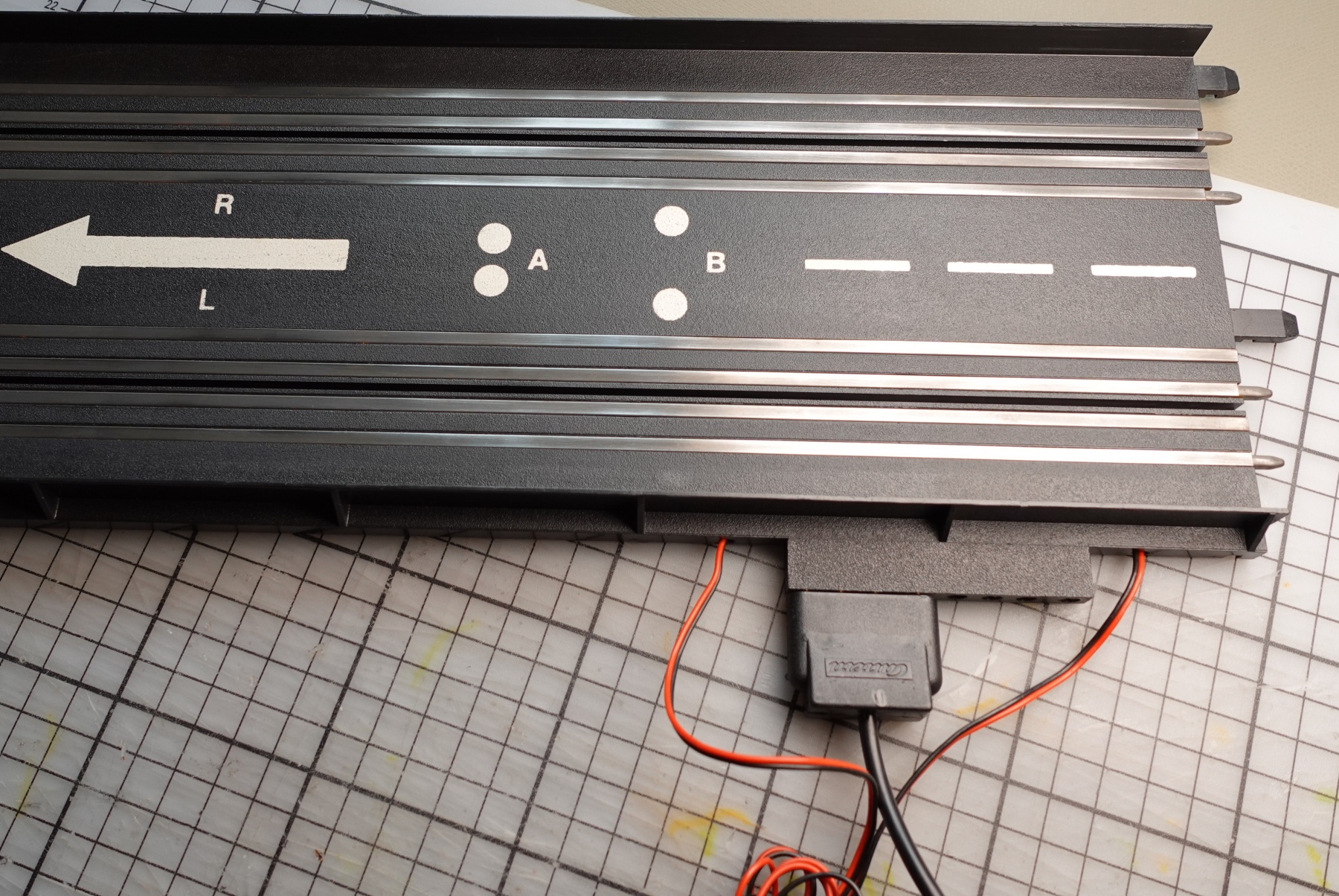 Nebenbei sei bemerkt, dass es die totale Fehlkonstruktion ist, weil die seitlich eingesteckten Regler-Anschlüsse dicker sind und die Schiene damit vom Boden abheben...