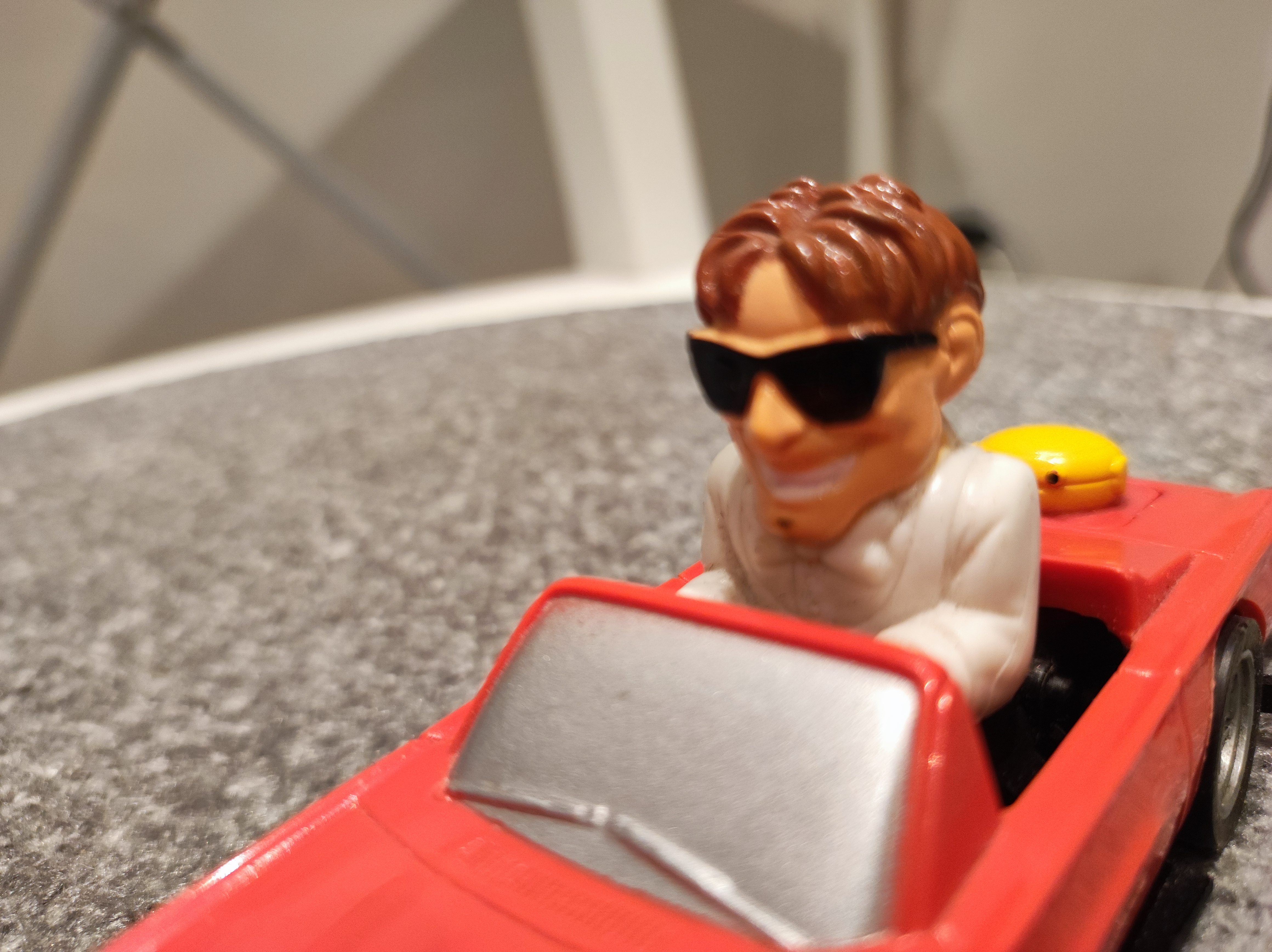 Aus der Welt der Happy Meals-Spielzeugbeigaben möchte ich euch heute das Filmauto von Flubber (1997) vorstellen. Ein 61er T-Bird Roadster. Am Steuer sitzt überlebensgroß Robin Williams, auf dem Kofferraum liegt der/die/das ominöse Flubber. Im Originalzustand war das drehbar gelagert, jetzt ist es festzementiert. Mein Dank geht an McDonald's!