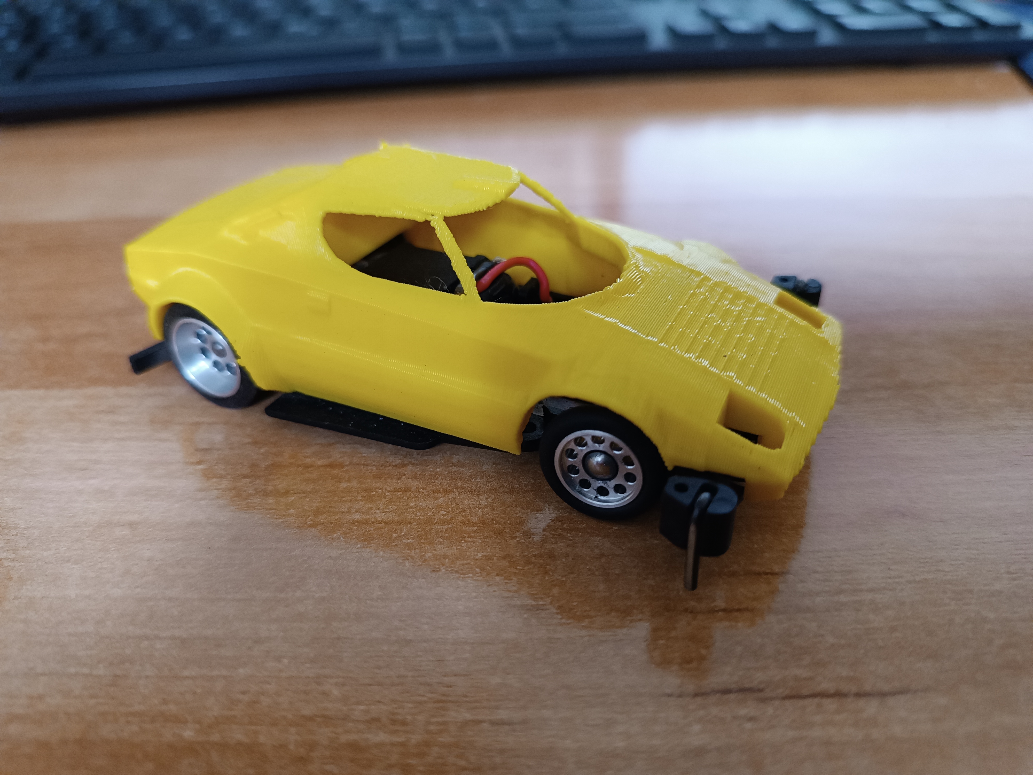 Man kann erkennen das es ein Auto ist. Scherz. Sieht für den ersten Druck recht gut aus. Durch die Kamerabilder siehst du die kleinen Fehler immer schärfer. War bei meiner ersten Karo auch so. Schön das ich helfen konnte.