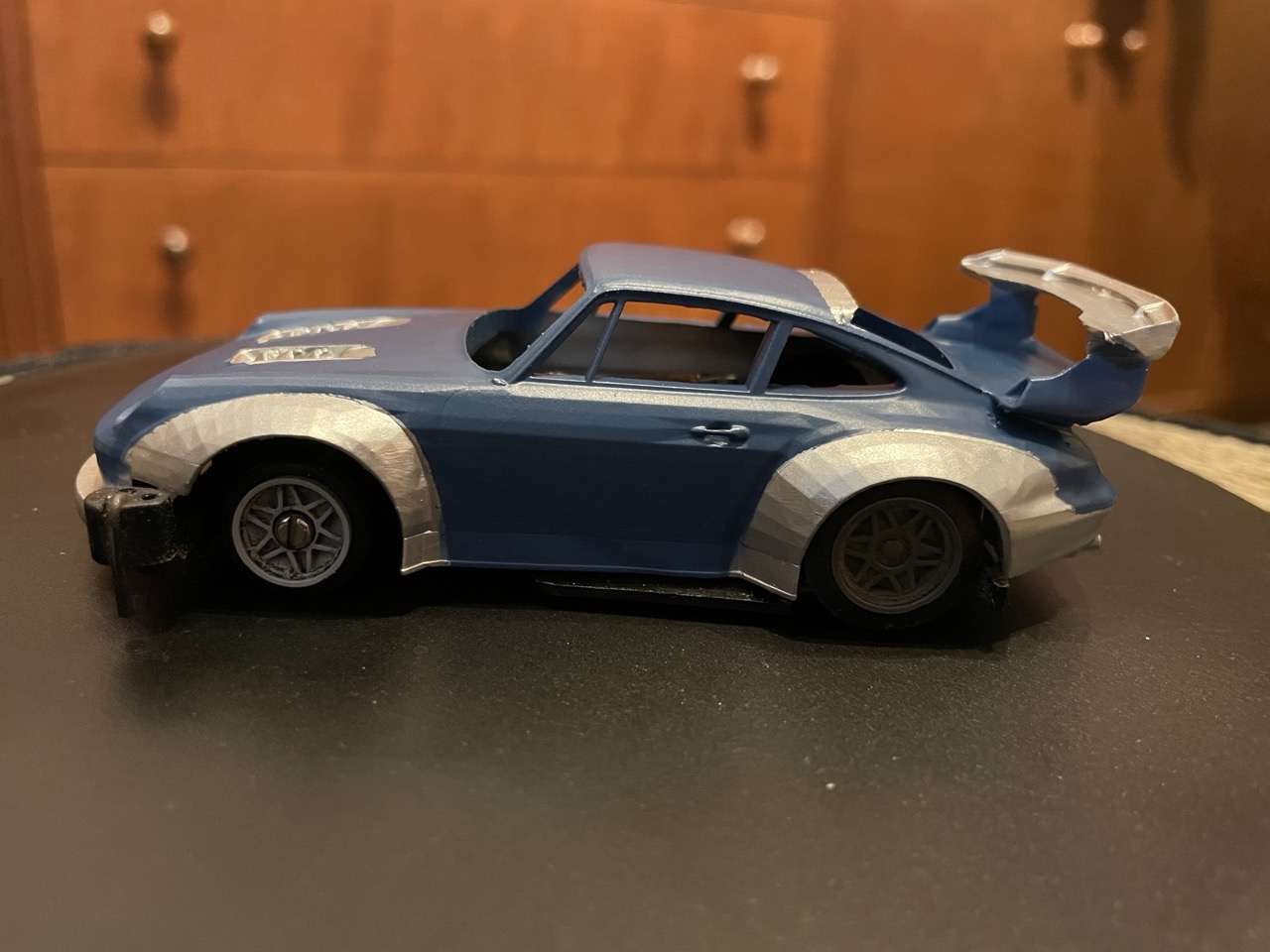 Den Heckspoiler muß ich noch etwas verstärken der bricht zu leicht und vielleicht noch die Vorderen Radkästen ein wenig weiter nach unten ziehen damits von der Optik paßt.