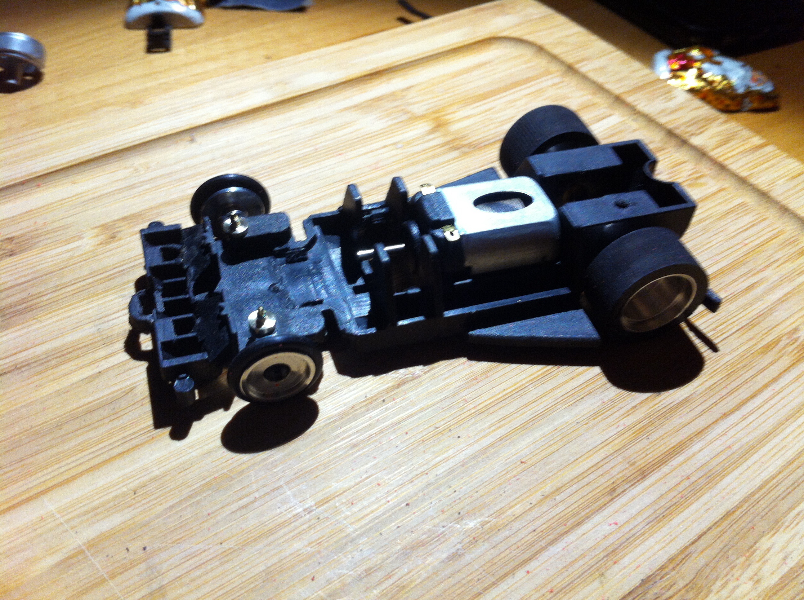 Das Chassis wurde um 9mm verlängert um die 68mm Radstand der Karosserie zu erreichen.