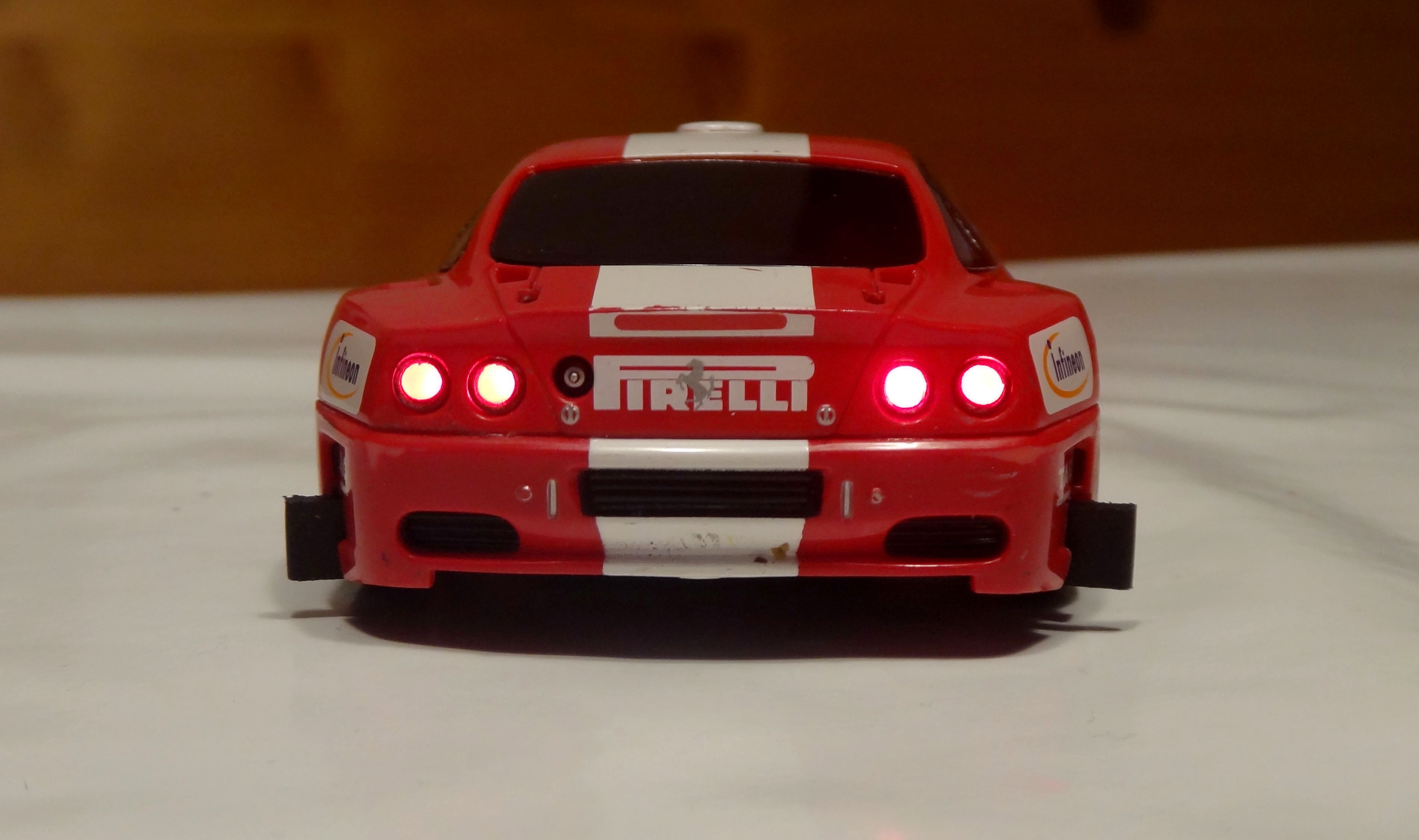 alle 4 Leds hinten beim Bremsen voll auf (Helligkeit auch Einstellbar über Poti)