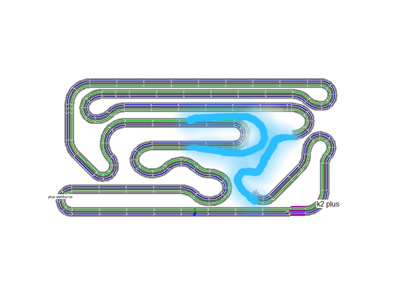 ...oder die mit noch einer kleinen Engstelle vor der Pluskurve, die Innenspur Vorteil bringt...unten aussen dann K2Plus