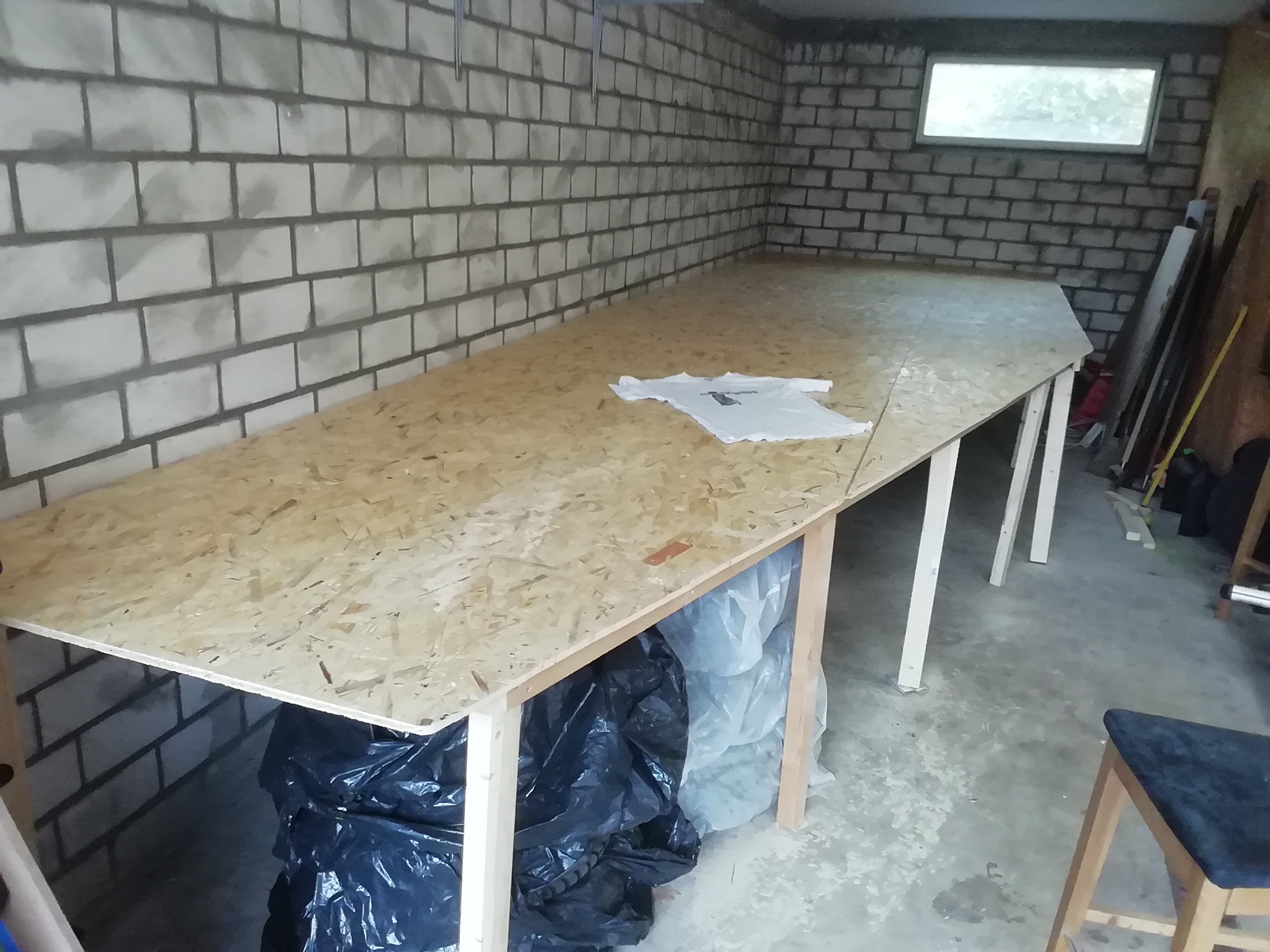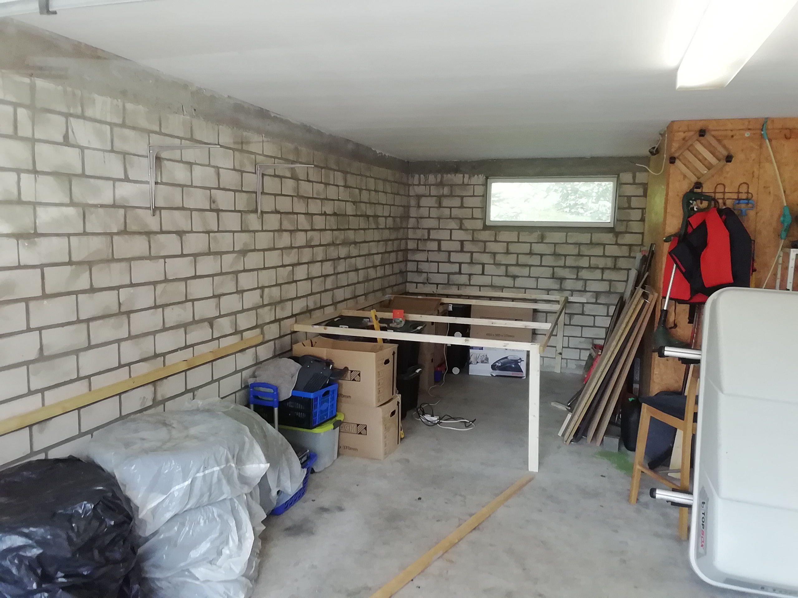 langes Regalbrett dafür, an der Wand befestigt...bevor klettern du mußt...zumindest Winkel oder ne Latte an die Wand knallen, um später Brett auflegen zu können...( in verschiedene Höhen? oder mehrstöckige, zum wechseln, Steckverbindung)..stabil abstützen