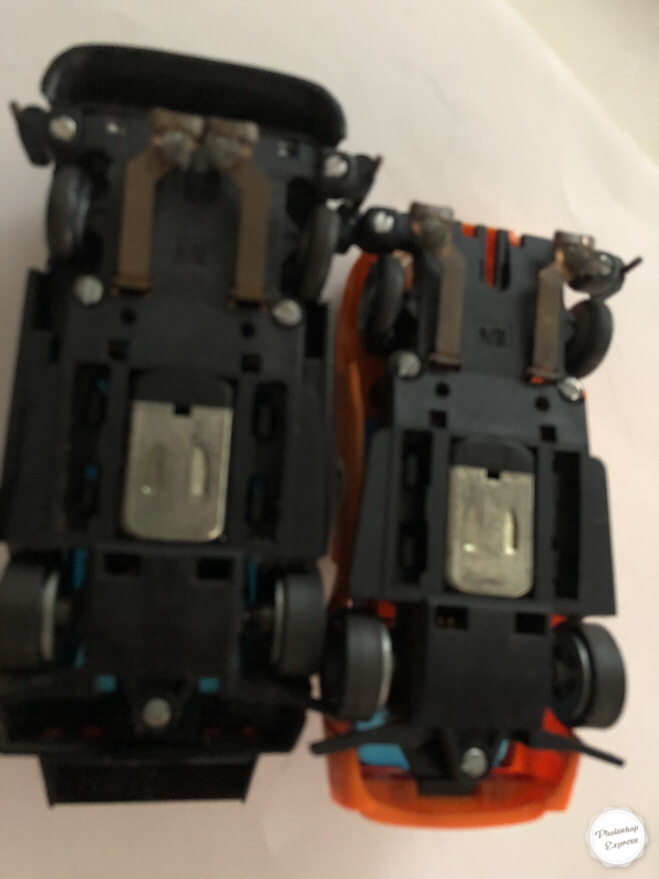 Ich bin nicht ganz sicher ob es evt. optisch täuscht aber auf den fertigen Chassies auf den Bildern scheinen mir die Alufelgen einen Tik zu weit aussen montiert zu sein. Wenn die Felgen über die Flügelchen des Chassies stehen hoppeln die Reifen meistens in den Innenkurven über die Führung.