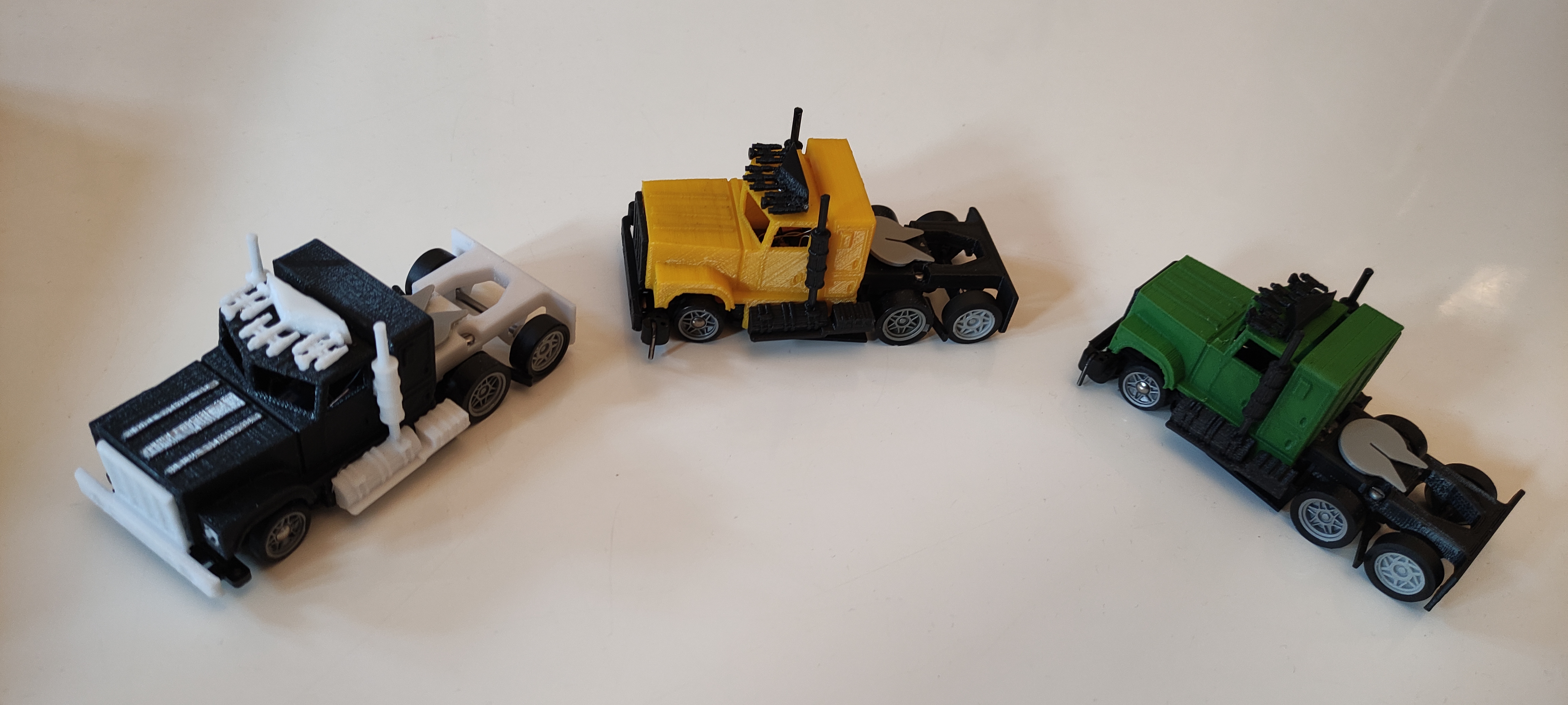 Hallo, deine Beschlagteile vom Truck sind super, habe schon mehrere gedruckt. Ein- und zweifarbig. Ja die Auspuffrohre sind sehr leicht brüchig, besonders beim anpassen. Was mir jetzt noch fehlt, ist der hintere Teil des Transpo Diesel Truck (weisser Truck). Oder zumindest der Teil der den Spoiler hält.