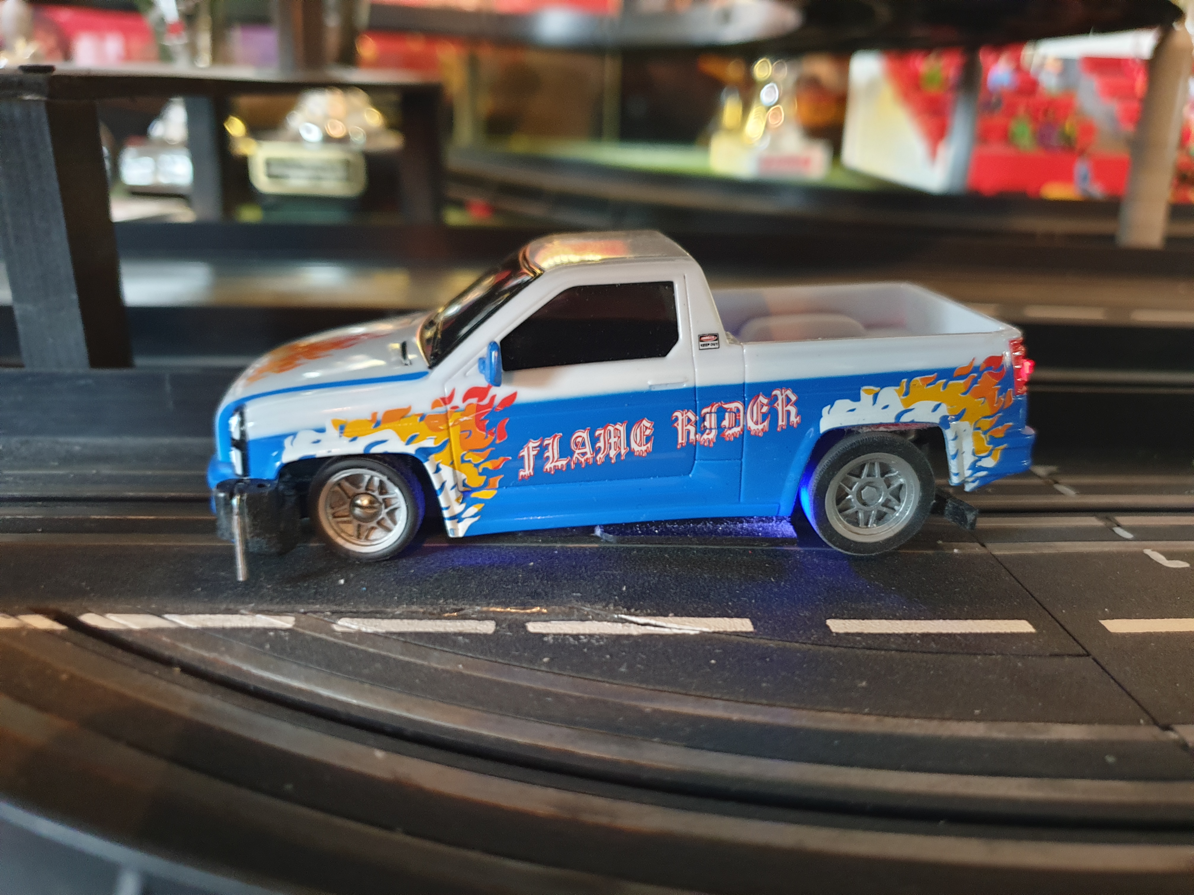 - Verlängertes Mabuchi-Chassis, umgedrehte GTO-Brücke, damit das Gewicht erhalten bleiben kann.
