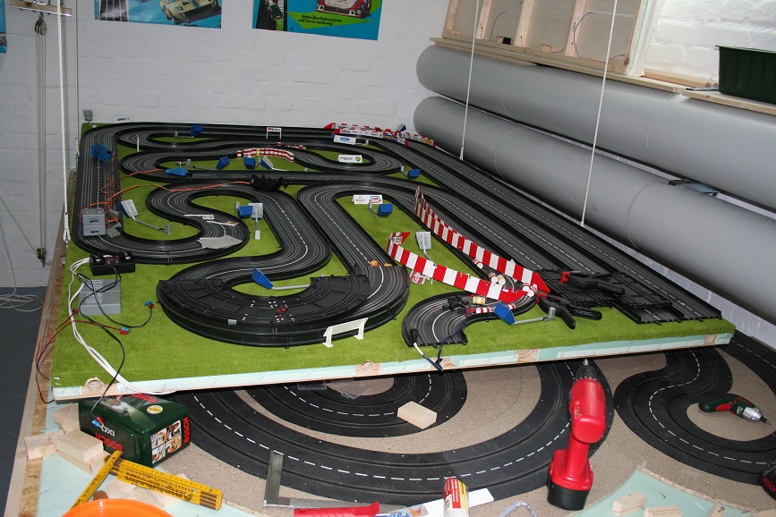Da mein Platz limitiert ist und ich mit mehreren Systemen rumspiele, hab ich meine Universal fest auf einer 2x3 Meter Platte aufgebaut und die Servo Platte 1,66x3 Meter, die auch noch zerlegbar ist,kann ich dann per Flaschenzug auf die UNI herablassen oder unter die Decke ziehen.
