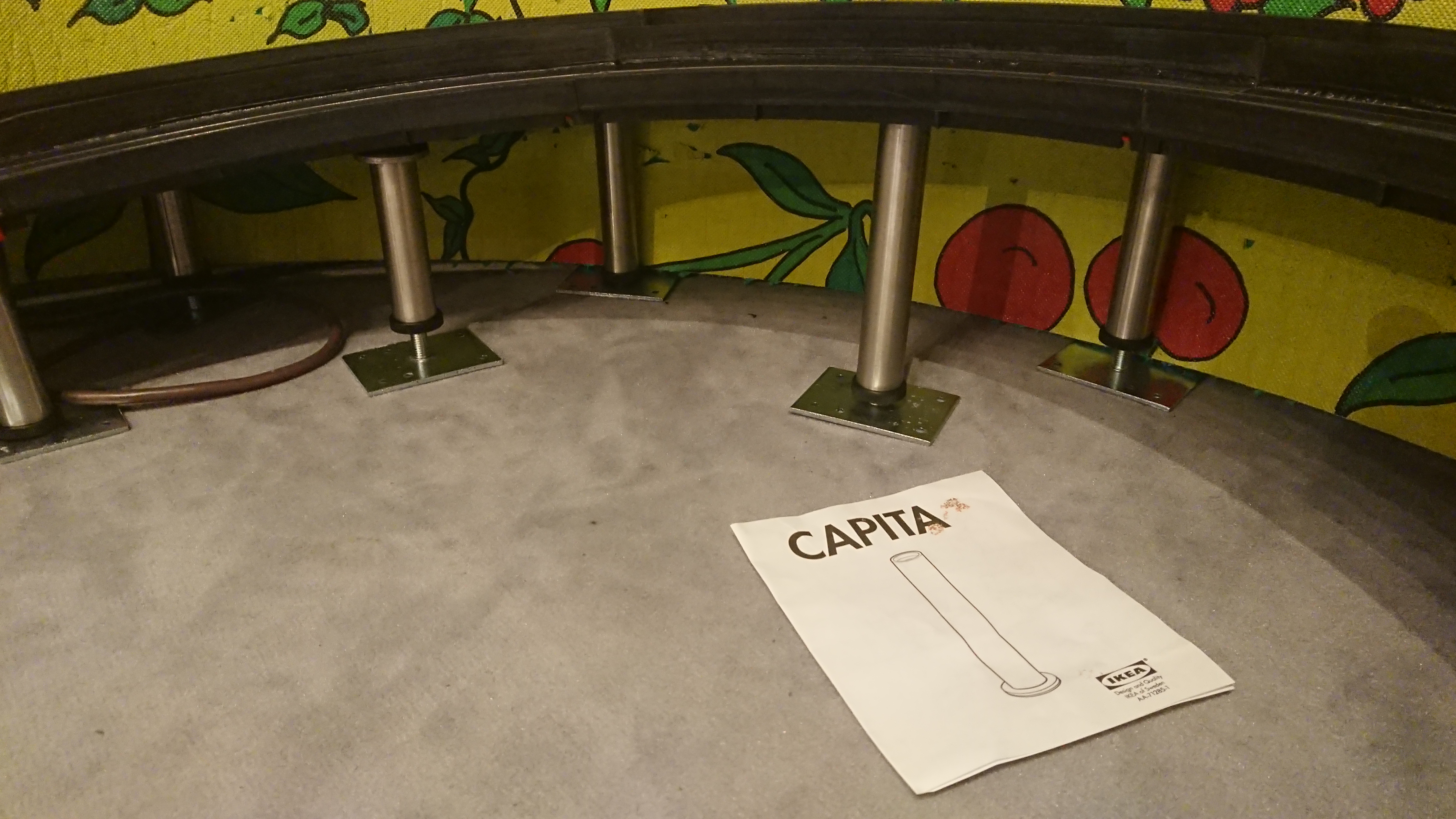 Ich hatte von einem anders ausgeführten Möbelbauprojekt eine Menge IKEA-Edelstahlstützen (namens "Capita") im Keller liegen. Ordentlich schwer und stufenlos verstellbar. Funktioniert gut.