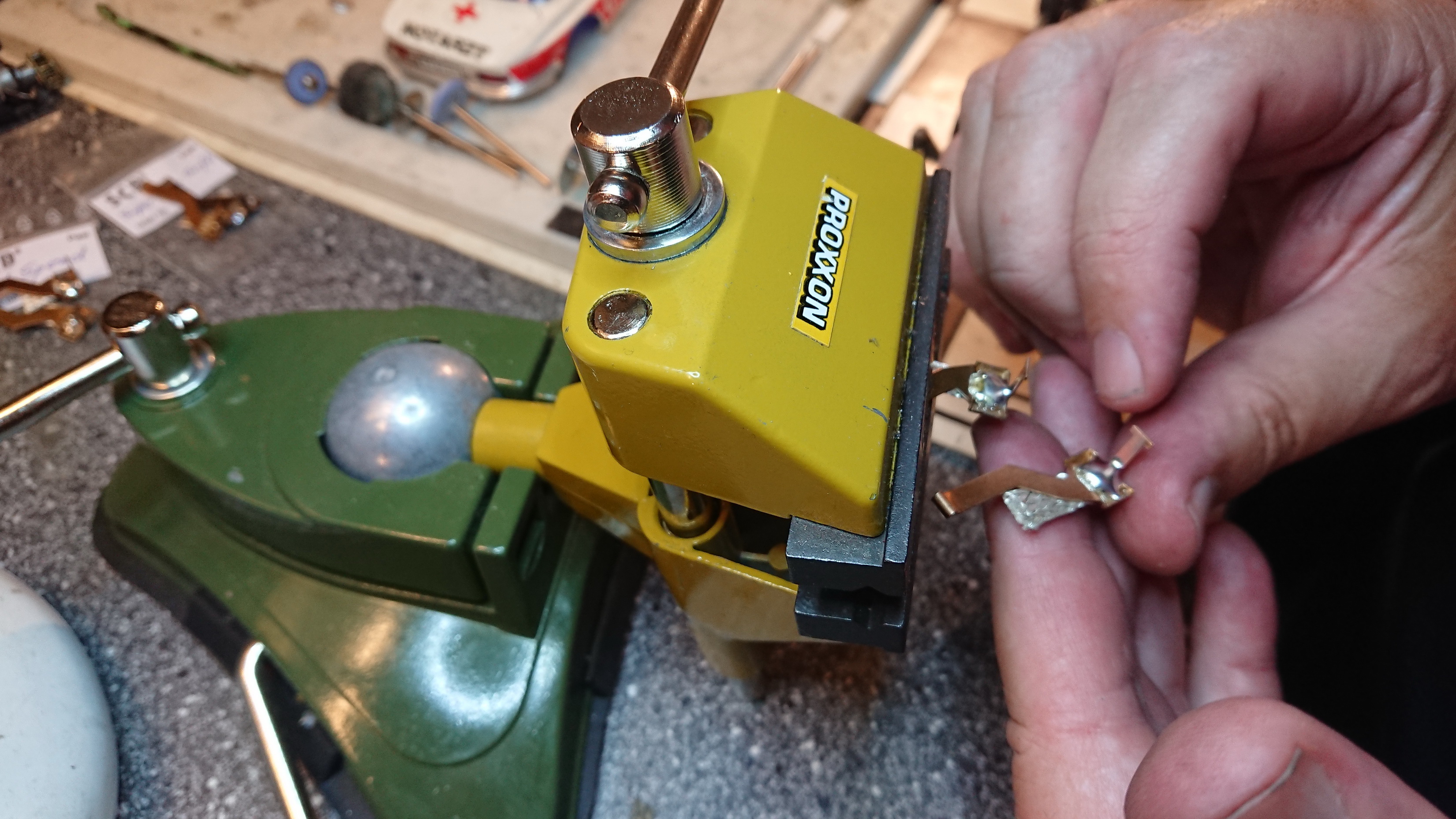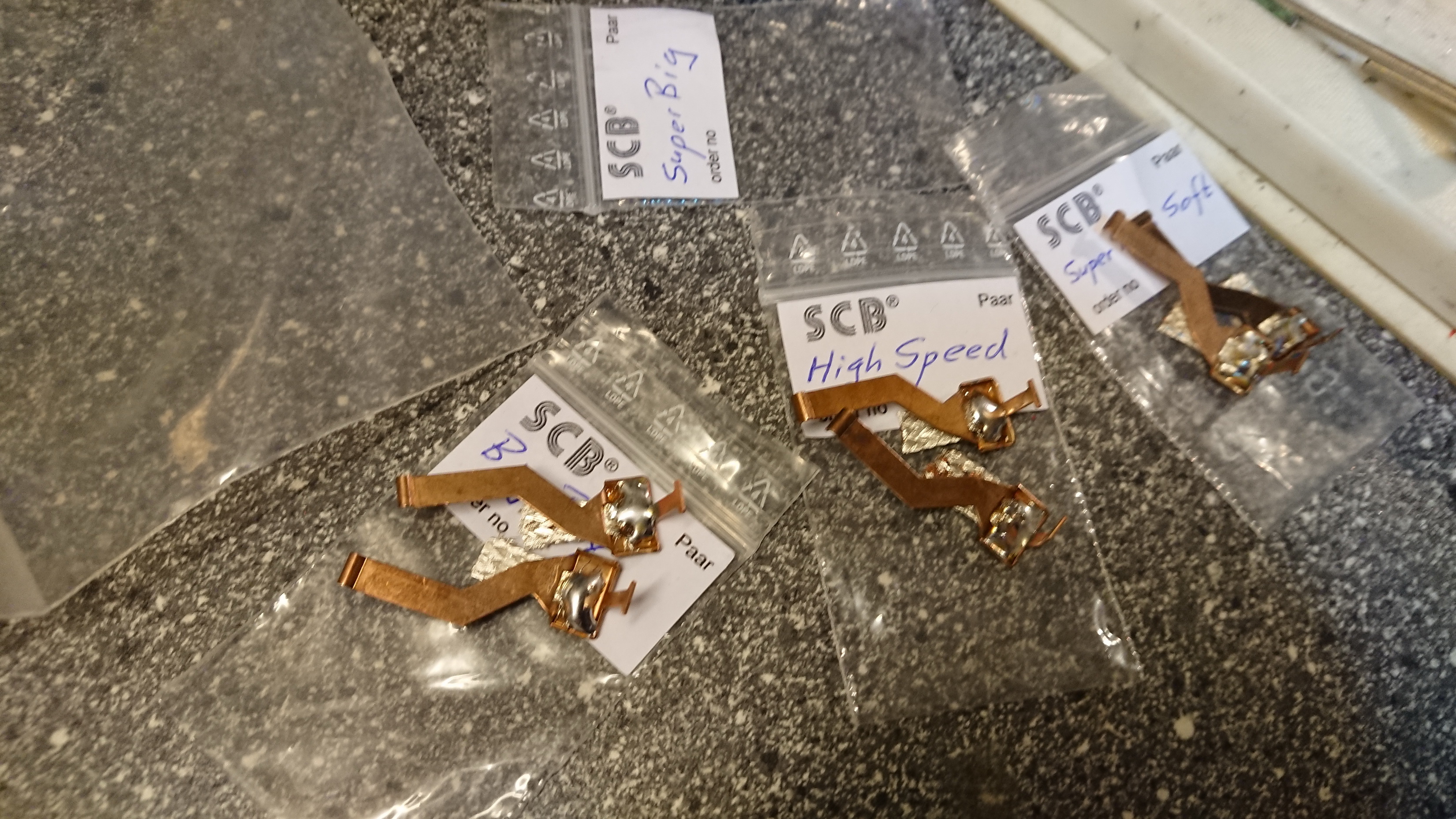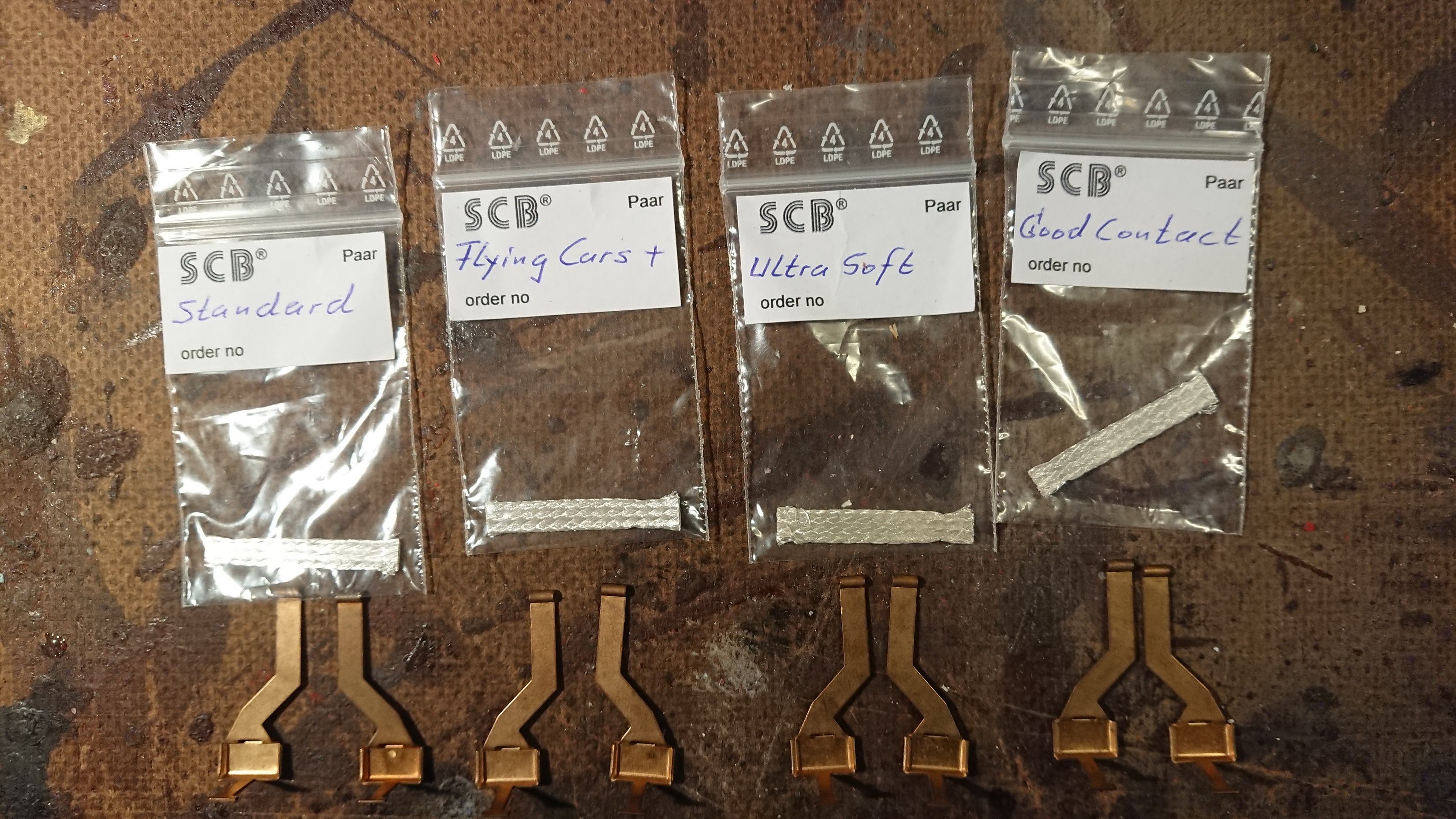 Hans-Peter Hoffmann von SCB (https://www.bahnlitze.de/de/schleifer-1-24.html) hat uns eine kleine Musterserie von seinen Schleifern versilberen lassen, insgesamt 8 verschiedene Typen.