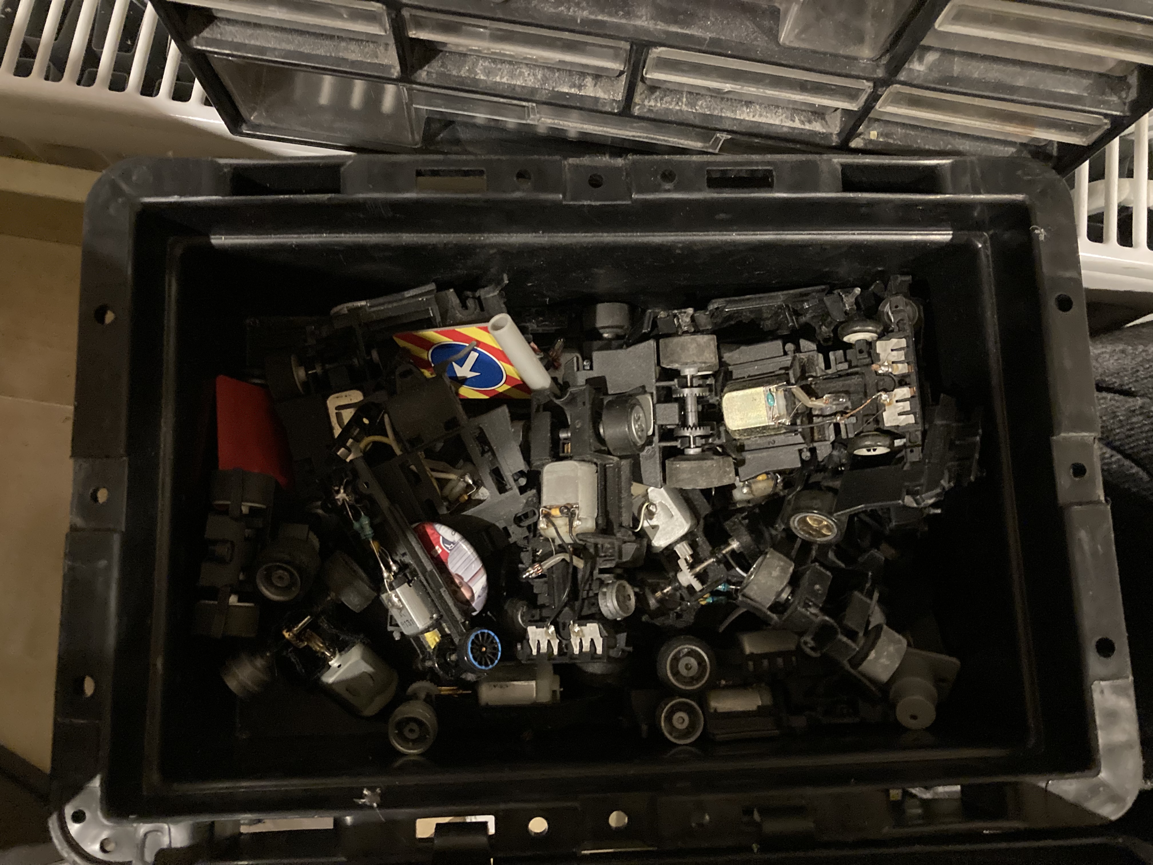 Abzugeben ist das, was auf den Bildern zu sehen ist + Kleinteile und so Zeugs. Die Boxen, in denen die Autos sind geb ich dazu.