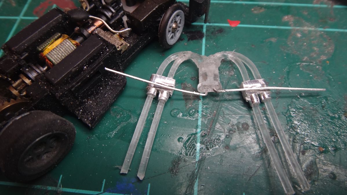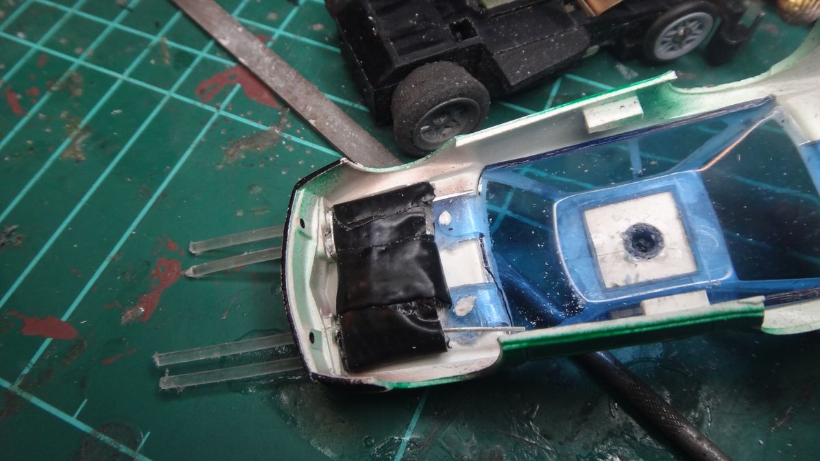 Gewicht ist wieder raus, da zu flach vorne. Kommt noch etwas Blei rein, aber das Chassis fährt auch so schon ganz gut...