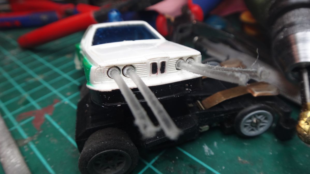 Da der BMW seine dritte Led auf's Dach bekommt...darf nur eine weiße rein...hab aber 4 Lampen vorne :crying: