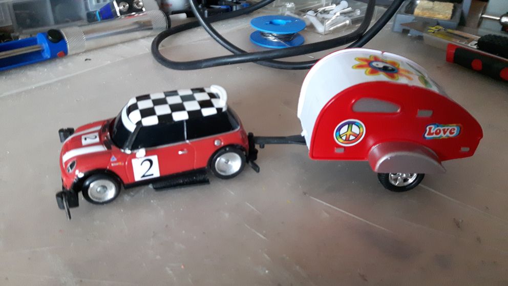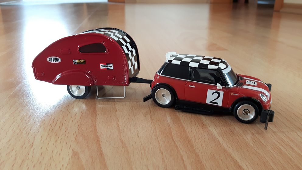 So, jetzt ist mein Mini wirklich fertig. Die ersten Bilder waren nur ein Zwischenstand. Sollte von Anfang an noch einen Anhänger kriegen. Will doch beim nächsten Hänger-Rennen in Ibbenbühren auch mitfahren können...