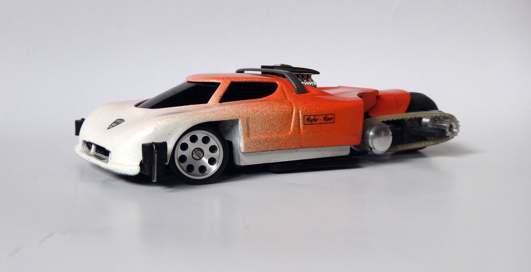 Das eingeklebte verchromte Plastik stammt von einem Revell-Motorrad-Bausatz...die Trittbretter/Fußrasten einer Harley...auch ein Auspuff is dran(rechte Seite unten)