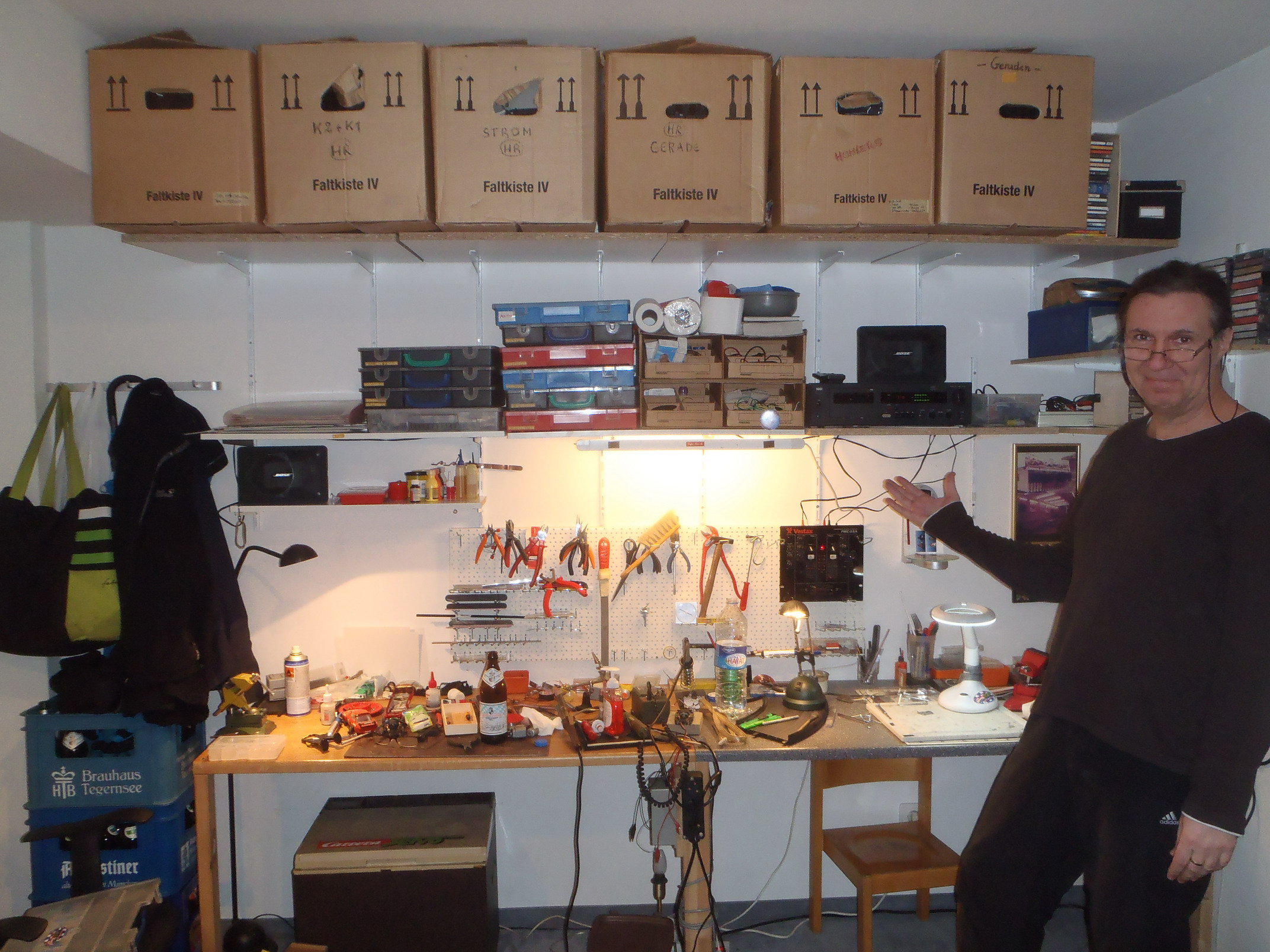 Habe dazu ein Stilleben unserer Schrauberplätze abgelichtet, zwischen dem ganzen Kram sehen wir (ausser dem Ki(r)ni):