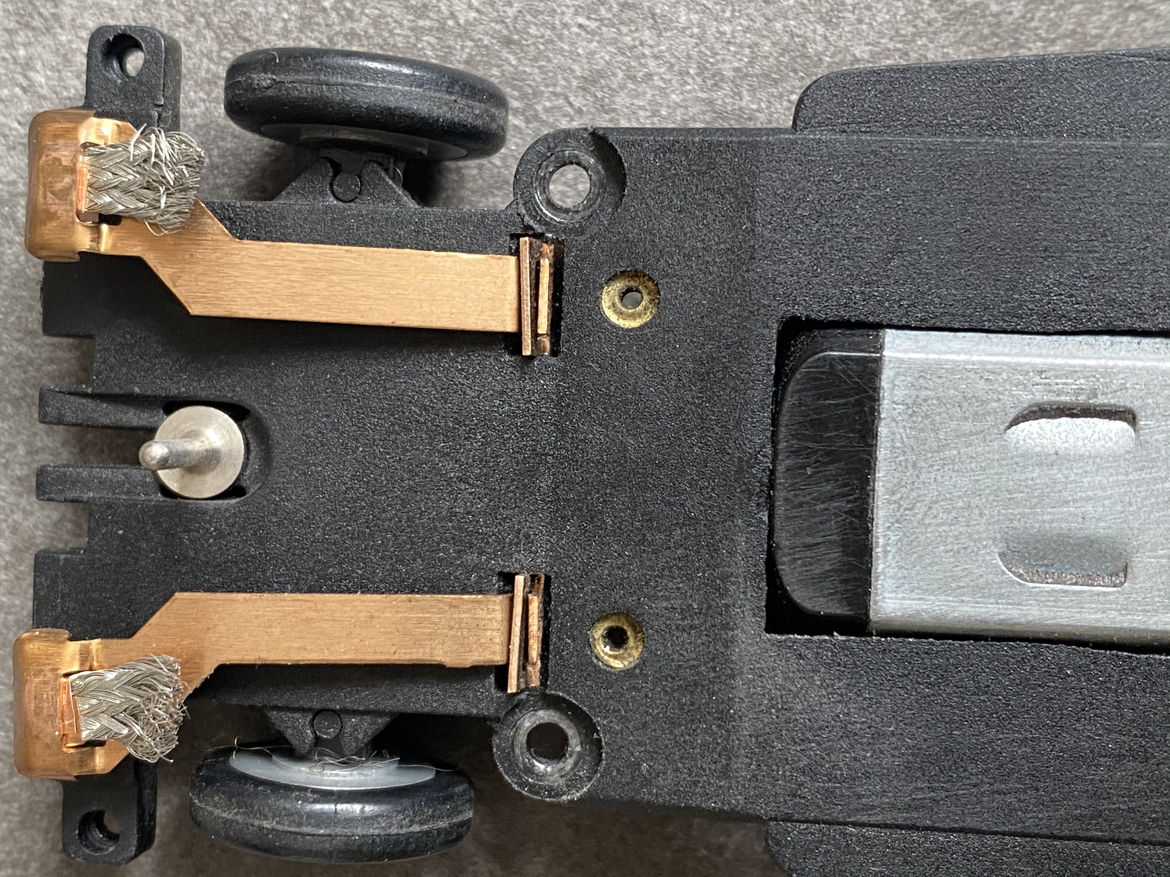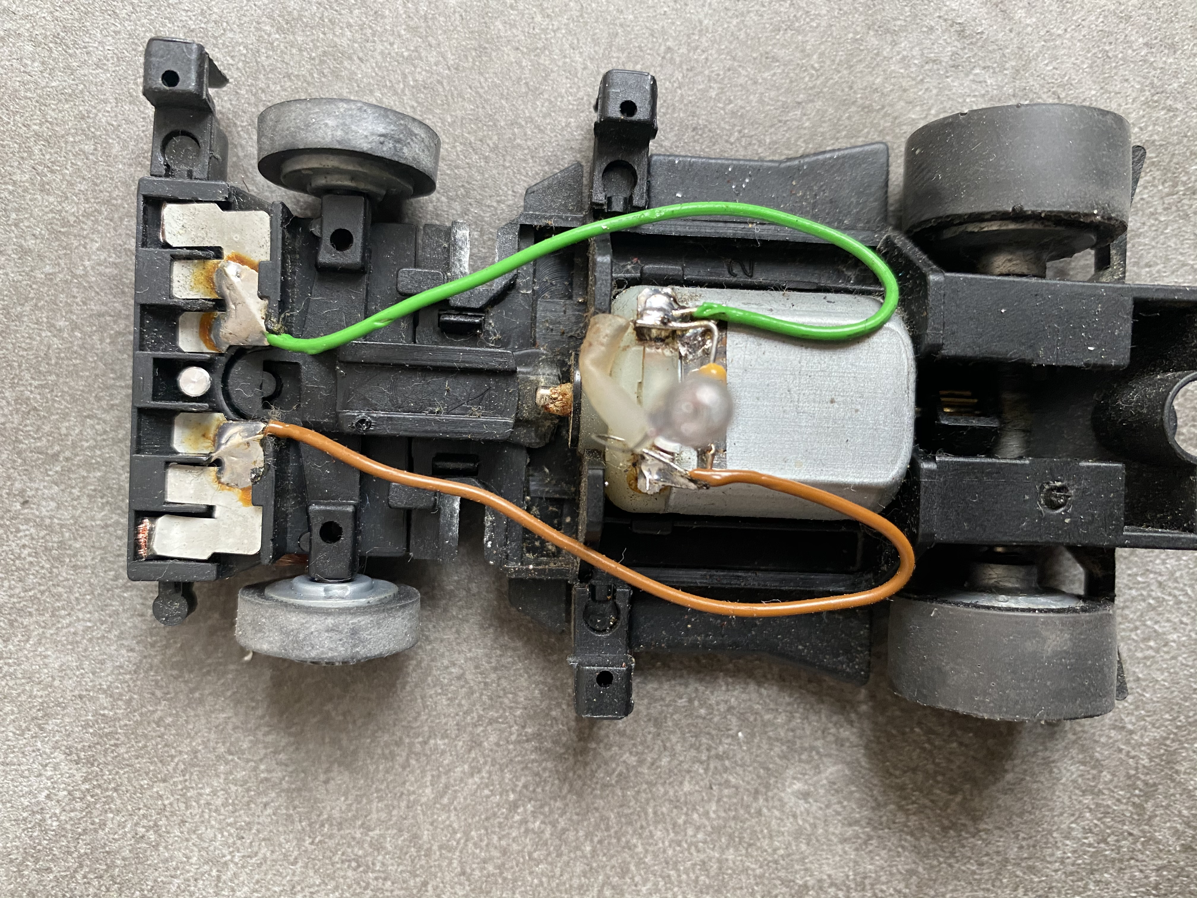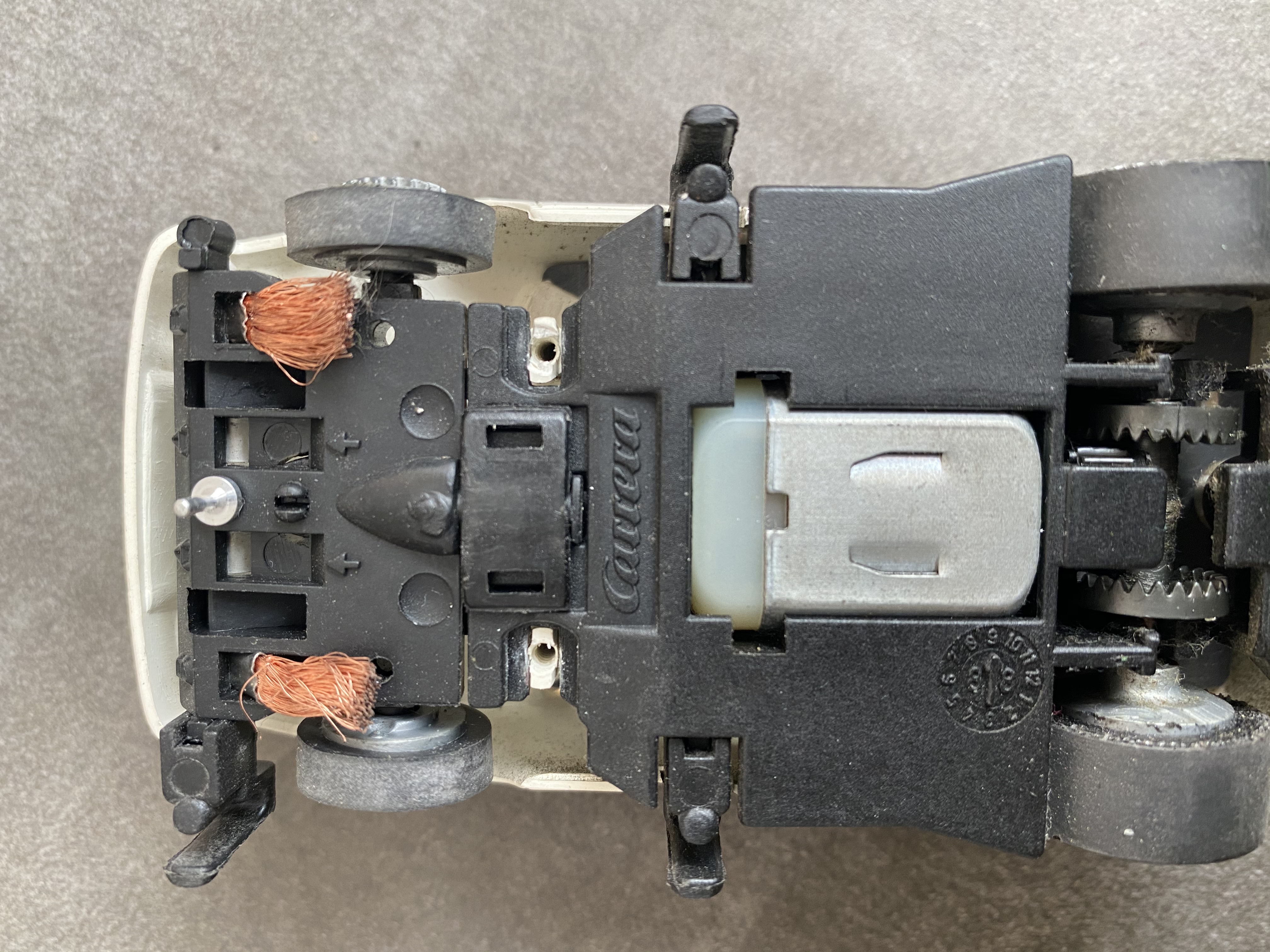 Spurstift raus...und wenn der Federduck der Schleifer stimmt, rennt das Ding....vermutlich besser ohne die zu breite Capri-Karosse